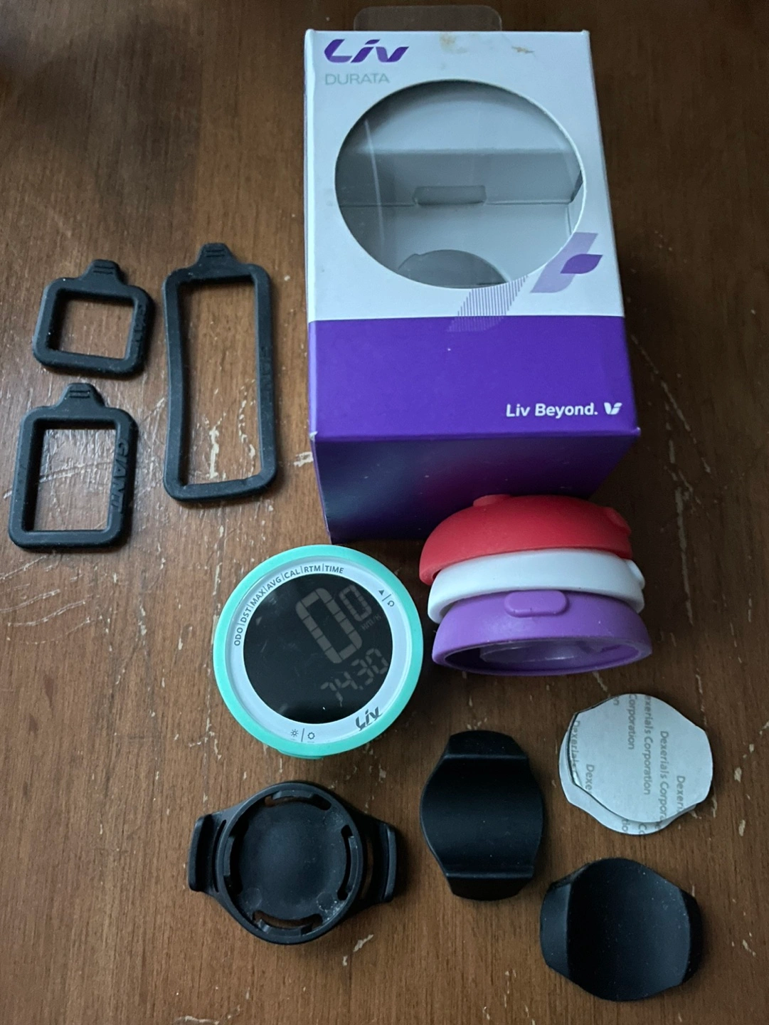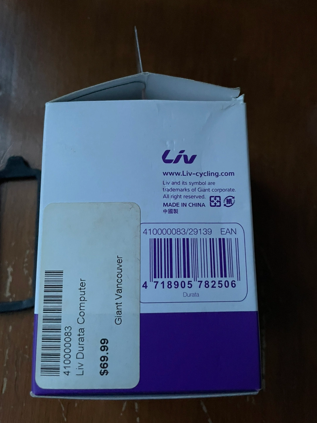Liv Durata Computer for cycling ๐ด๐ปโโ๏ธ Bought from Giant Vancouver a few years ago but still in great condition as I ended up not cycling as much as I planned. Will need a new zip tie to hold the sensor in place on the wheel (see pics).