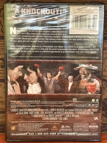 Brand new, still in plastic. Never opened. Plastic may have minimal signs of wear from handling and storage (see photos). We accept returns within a 30-day window so long as the integrity of the item is not compromised and that the return shipping fee is covered by the buyer. Please feel free to message us with any questions! Embark on an inspirational journey with "Rocky," the 1976 classic that has captured hearts worldwide. Available on DVD, this drama masterpiece by John G. Avildsen tells the tale of an underdog boxer, featuring a gripping narrative that is as poignant as it is thrilling. With a run time of 120 minutes, this film is perfect for an evening at home or a cozy movie night."Rocky" comes replete with multi-language options, including English, French, and Spanish audio and subtitle choices, ensuring an inclusive experience for a diverse audience. Rated PG, it's a film that transcends age, making it an excellent addition to any movie lover's collection. Whether you're a fan of intense sports dramas or uplifting stories of perseverance, this MGM-produced DVD promises to deliver a cinematic experience that has stood the test of time.