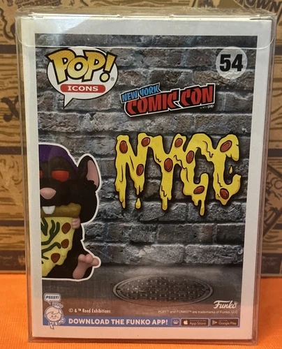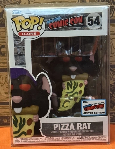 Brand new in box, never opened. Comes with protective plastic box cover. Box may have minimal signs of wear from handling and storage (see photos). This exclusive collectible features the beloved character, Pizza Rat, and was only available at the New York Comic Con. The vinyl material and Pop! Vinyl product line make it a durable and high-quality addition to any collection. With its unique design and intricate details, this Funko Pop! Vinyl figure is a must-have for any fan of the New York Comic Con or Funko Pop! Vinyl collectibles.