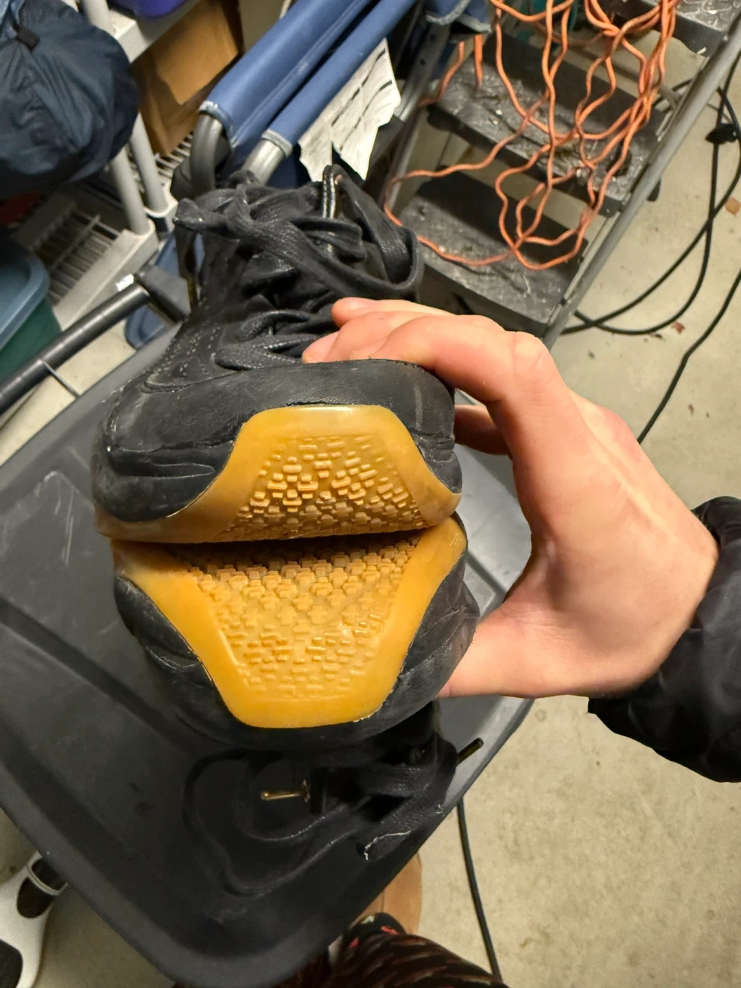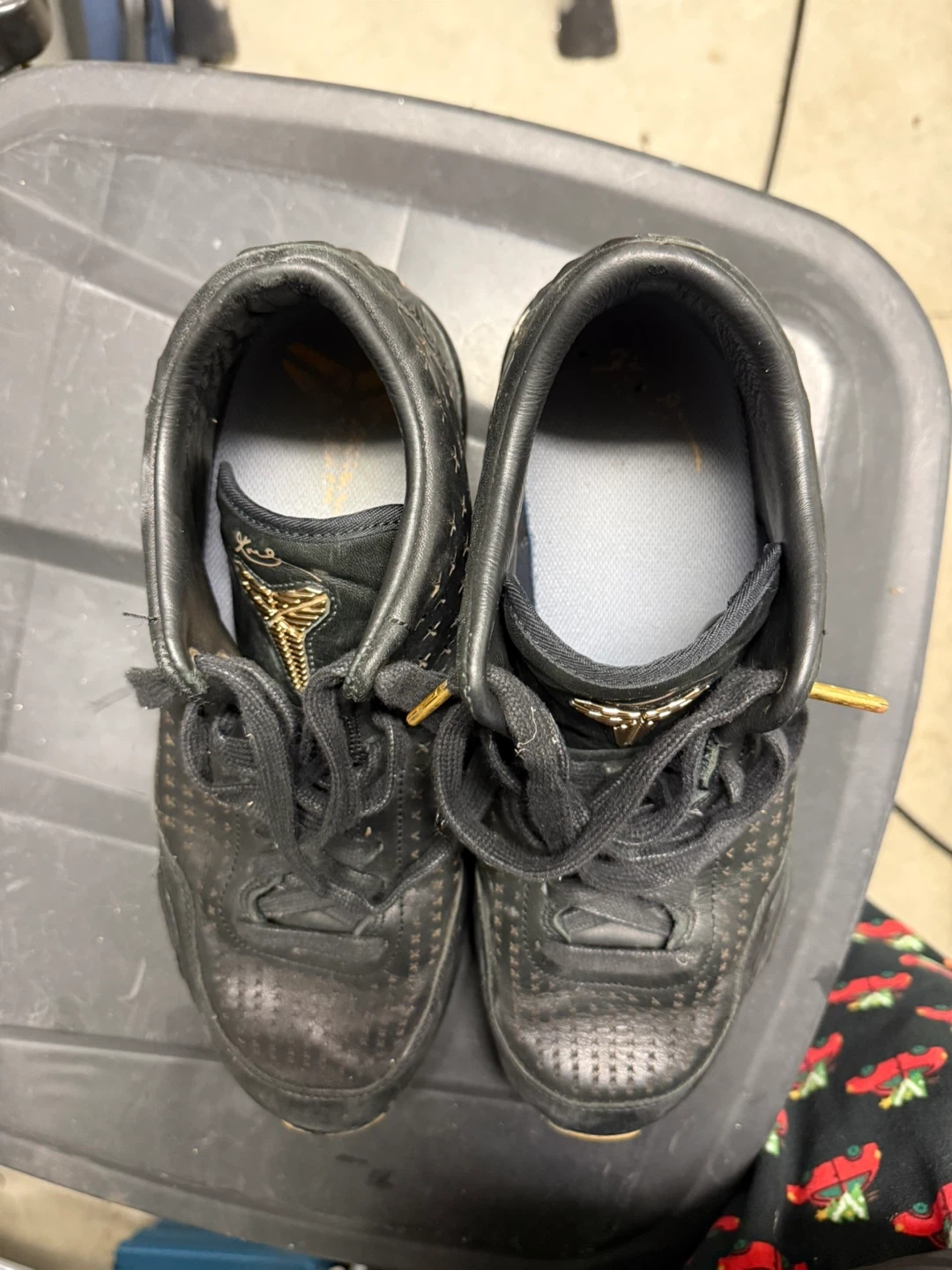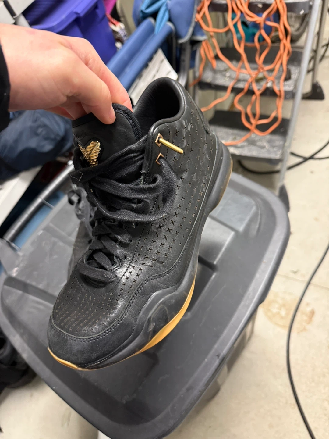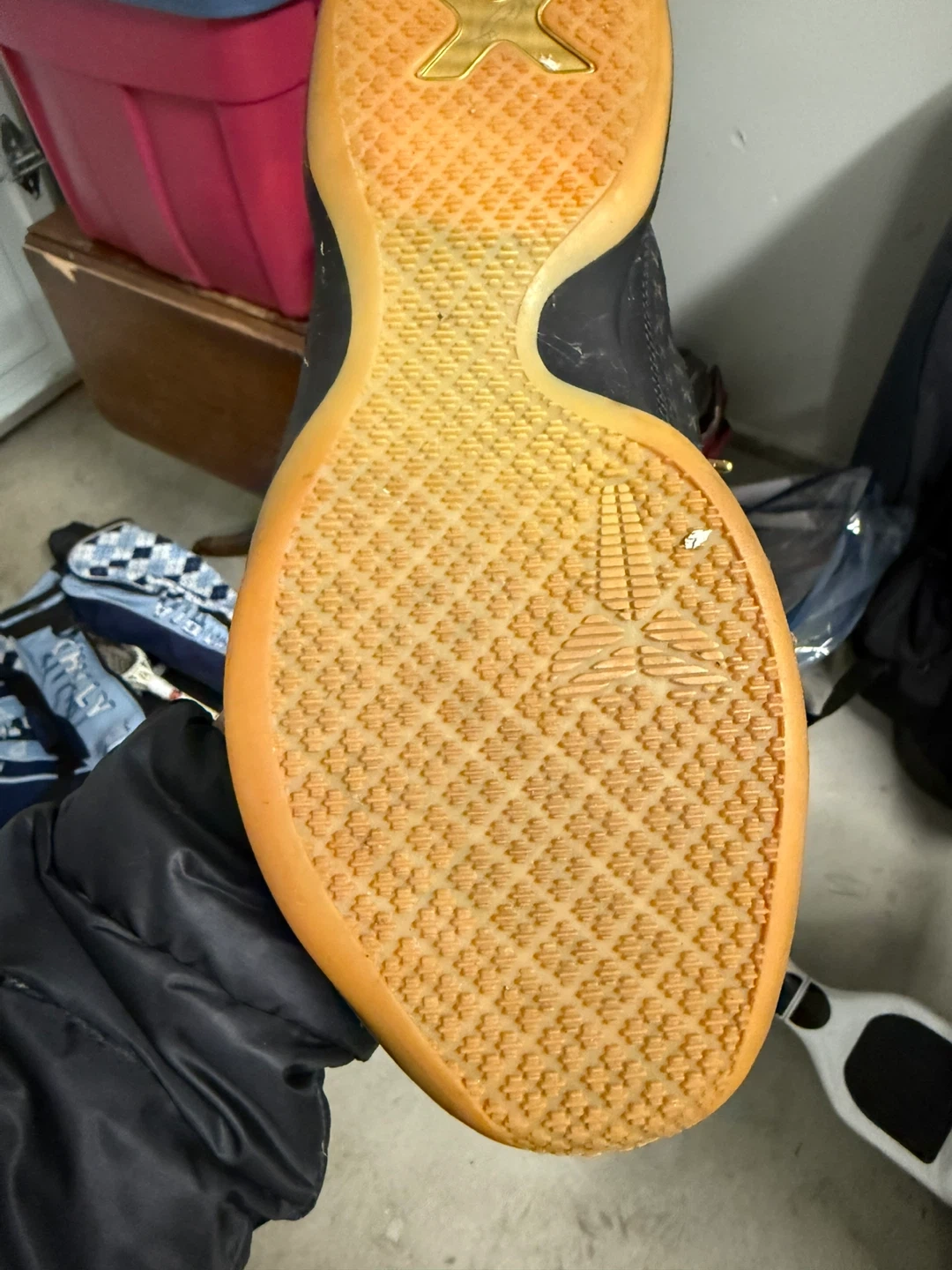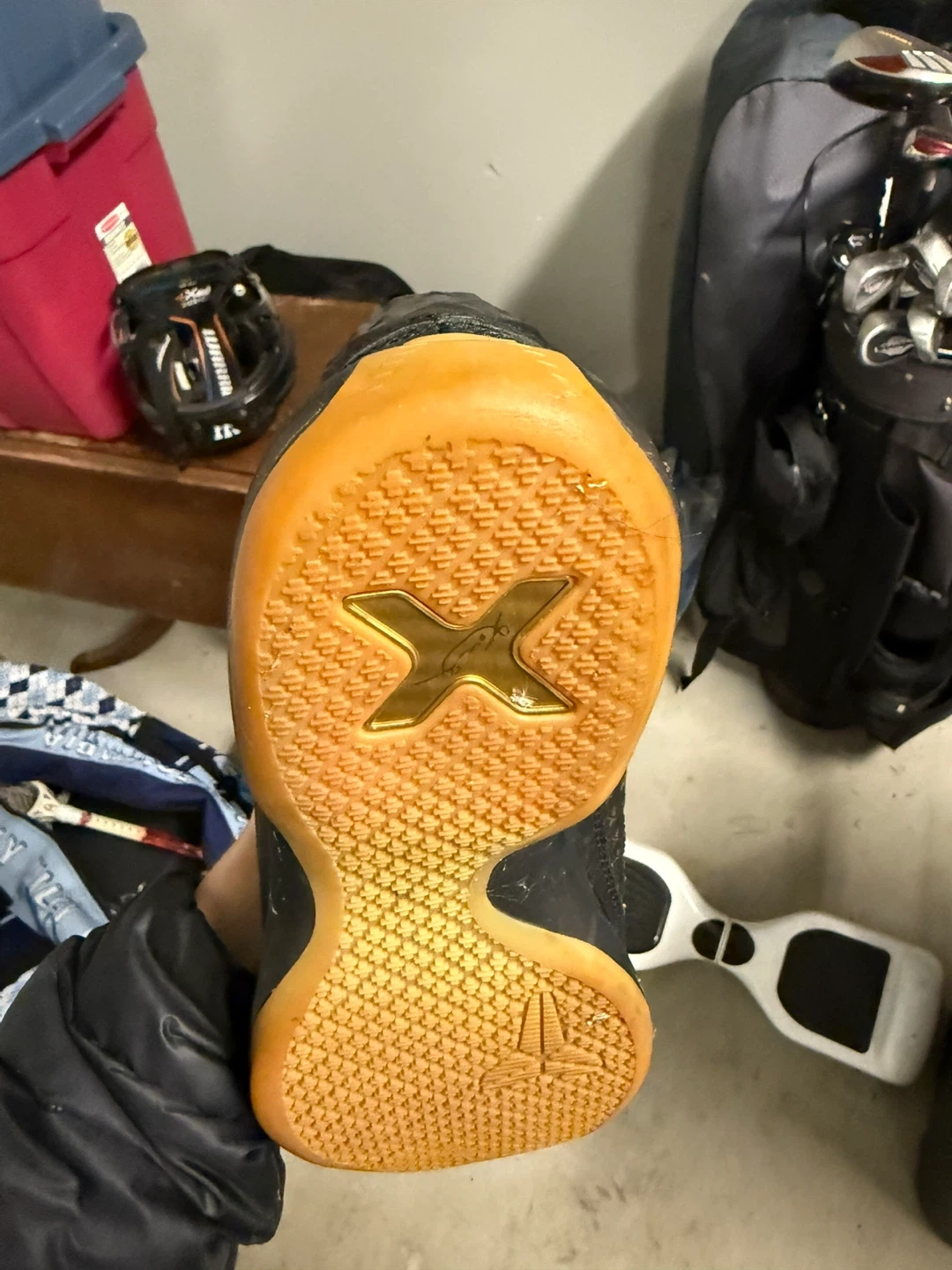 (Size 10) Selling a pair of Nike Kobe A.D. NXT basketball shoes! They have a unique design with a black upper and a gold-coloured sole. The shoes show some signs of wear, but are still in good condition for playing ball or casual wear