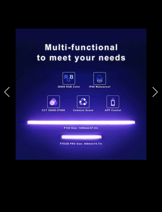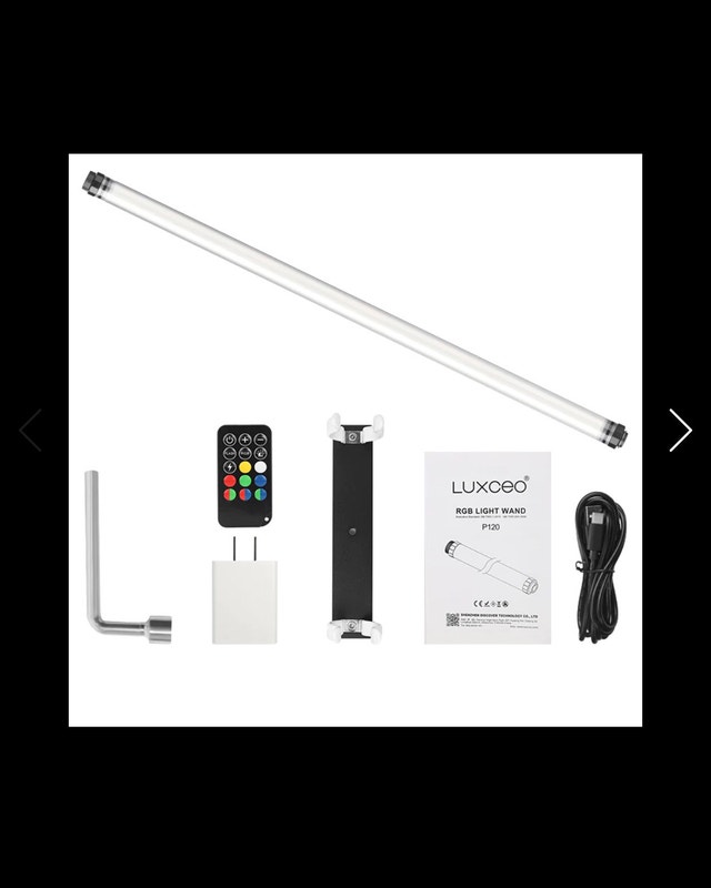 NEW Open Box Videography, Photography LED light LUXCEO P120 RGB Handheld Photography & Video Light 47.25in RGB Waterproof LED Video Light Tube. Specifications: LED Average Lifespan: 36,000 hours LED Lamp Beads Quantity: 294pcs Power Input: DC 12V 1.5A Max output power: 18W Brightness: 1350lm(max) Adjustable color: 36000 colors via app Battery Capacity: Li-ion 7.3V / 10,400mAh Battery Runtime: 4.5 hours in the brightest mode CRI: Ra> 95 Charging Port: USB Type-C Waterproof Rating: IP68 Material: PC+ABS+Aluminum Dimensions: 47.25“ x 1.4” x 1.4” Weight: 838g/29.6oz. Retails for over $245. Priced accordingly, new item. Local pickup and cash only. Added a full indepth YouTube review by @FUTURESPACECOLLECTIVE