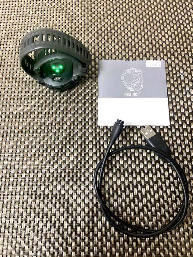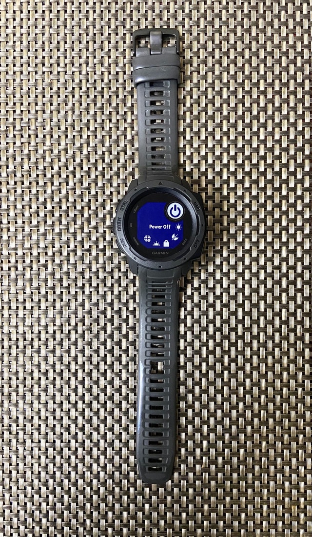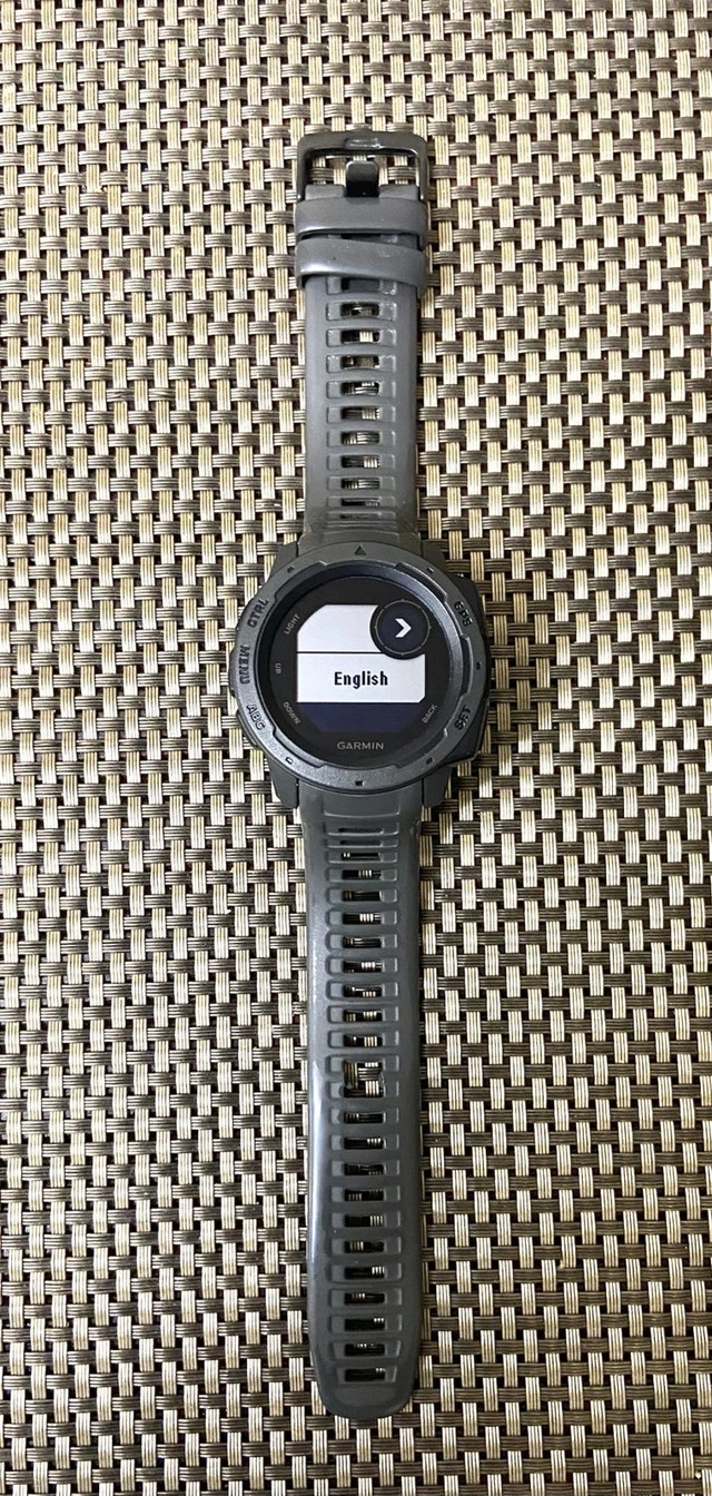 Selling a Garmin Instinct watch, a rugged GPS watch designed for outdoor adventures and fitness tracking. This particular model comes in a sleek grey color and is ready for its next adventure. Key Features: - GPS, GLONASS, and Galileo support for accurate tracking in challenging environments. - 3-axis compass and barometric altimeter. - Tracks heart rate, activity, and stress. - Water-resistant This watch is built solid and quite reliable. The strap might need to be replaced, which can be done aftermarket. Priced accordingly. Local pickup and cash only. Lowballers will be ignored. Just a friendly reminder: if you see this ad, the watch is still available!