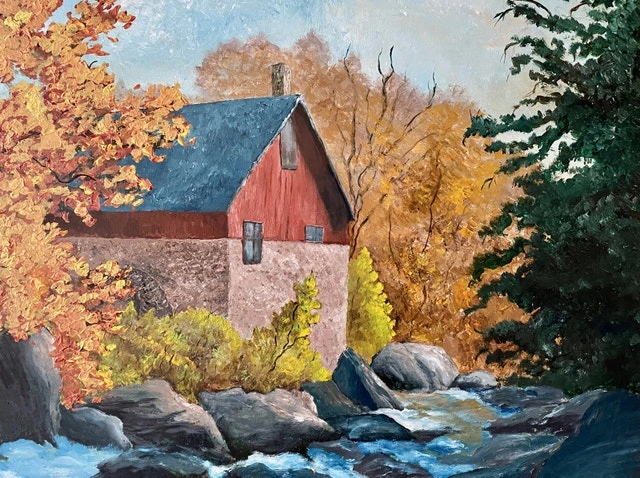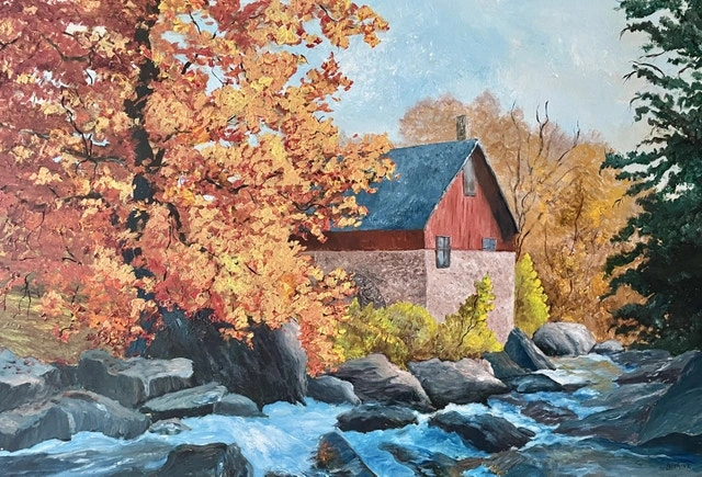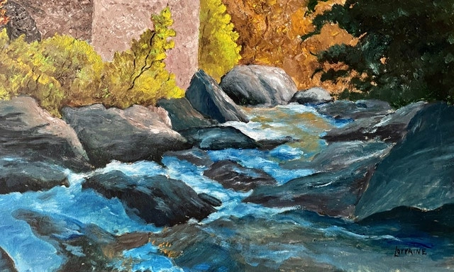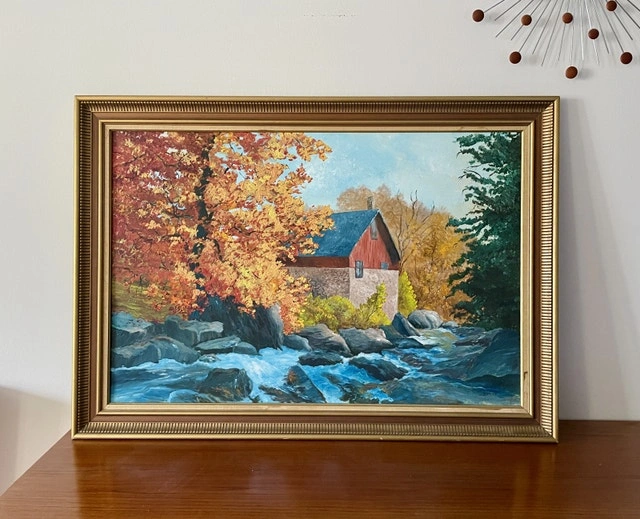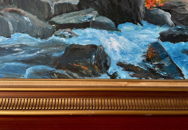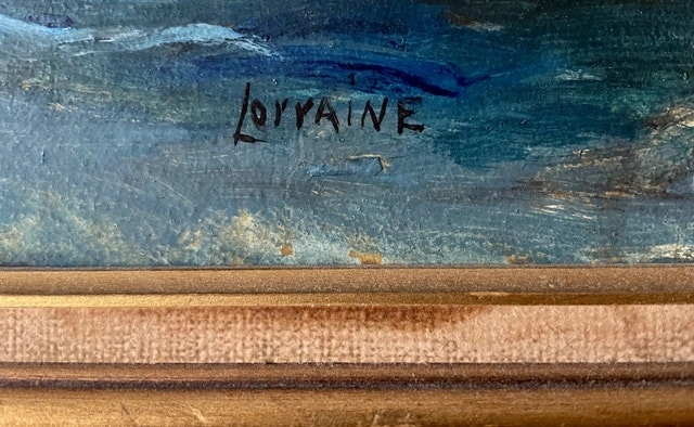 A signed original scenery oil painting. Large beautiful frame. Artist: Lorraine. Frame size: 41” x 29”. Pickup only.