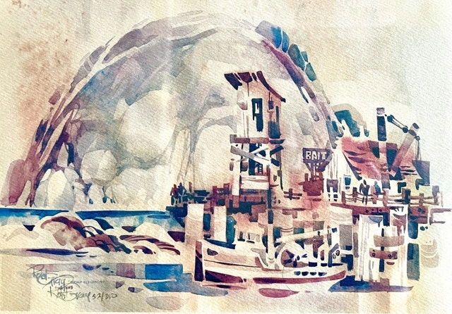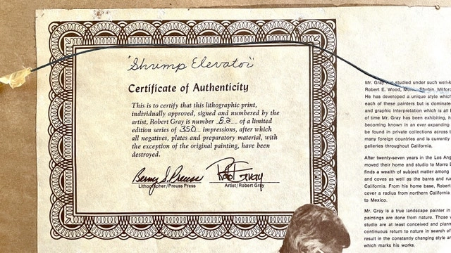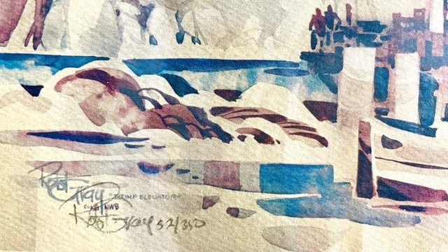 Vintage lithograph watercolor painting Title: Shrimp Elevator Signed by the artist: Robert Gray Numbered 52/350 Frame: 15” X 12” Excellent condition