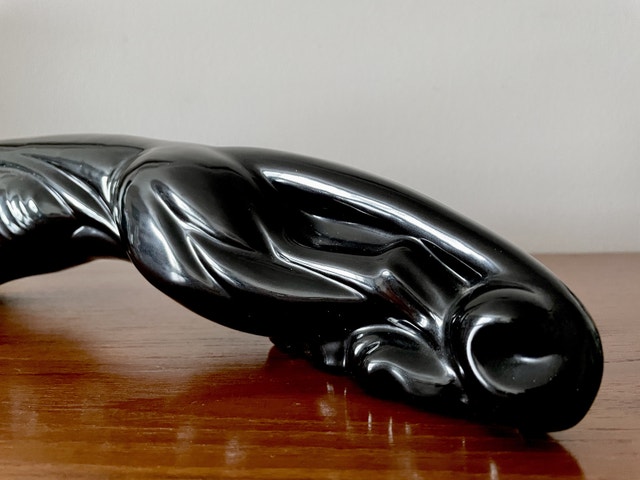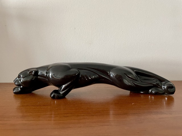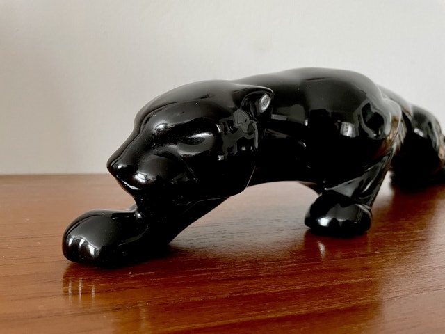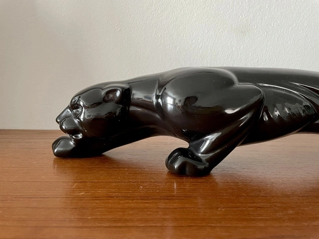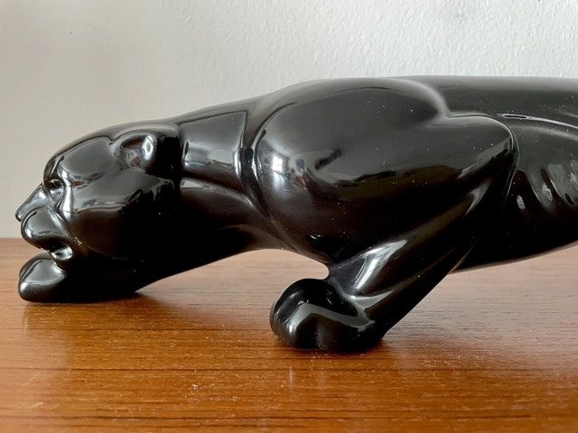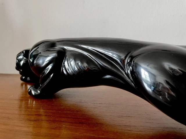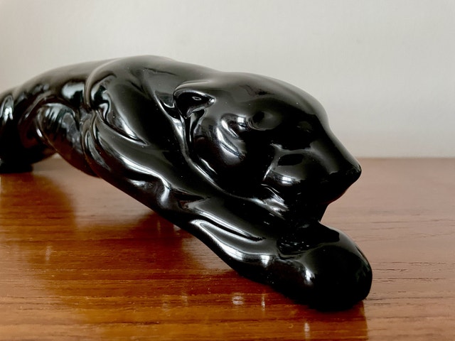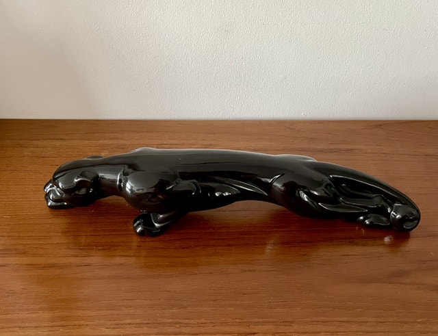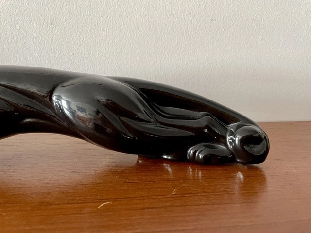 Vintage Mid-century ceramic black panther in low prowling position. Excellent condition. Great size (19” long) for your table or bookshelf. Glossy finish. Super beautiful.