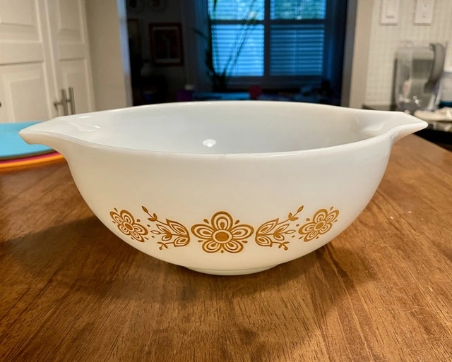 Vintage Pyrex #443 Butterfly Gold and White Cinderella Mixing Bowl 2.5 QT.