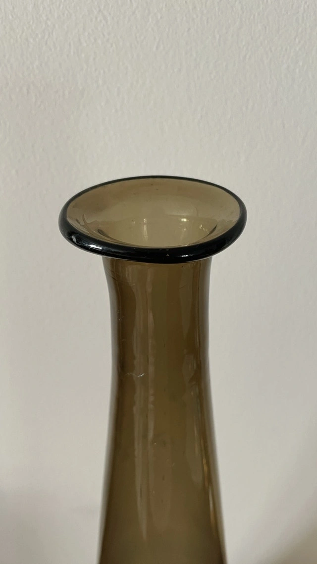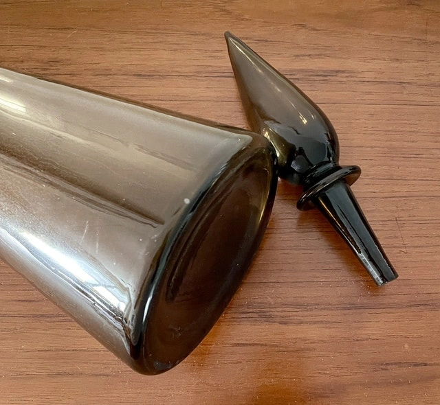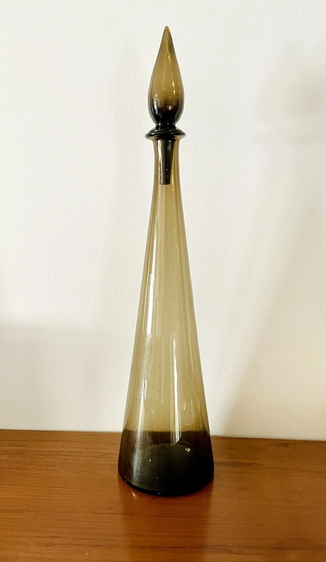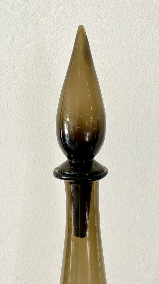 Mid Century Empoli Glass Decanter Vintage Genie Bottle Italy 25”. Smooth surface. No chips or damages at all. Excellent condition.