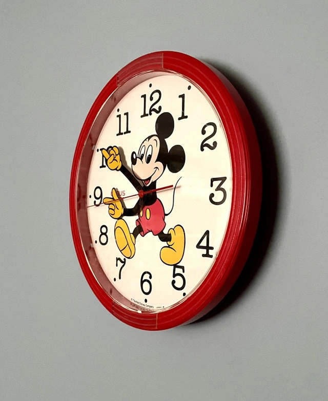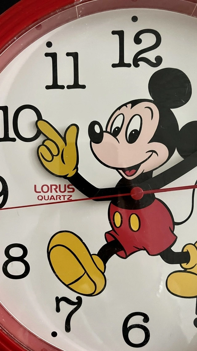 Vintage Disney Mickey Mouse Clock Lorus Quartz Red Wall Clock 10.5" (Made in Japan). The clock quartz movement needs to be replaced.