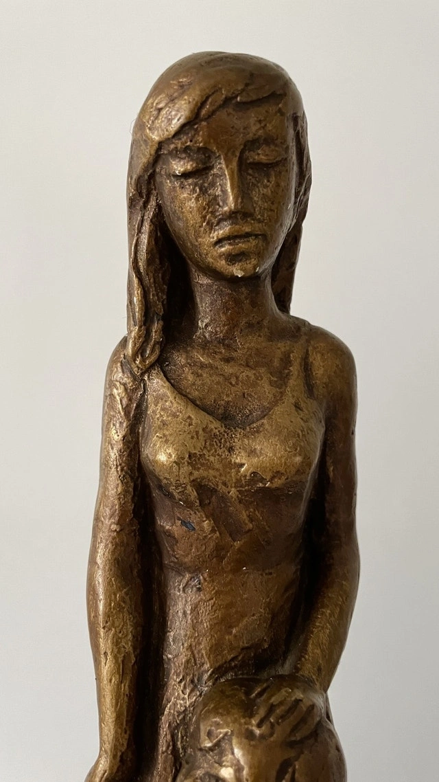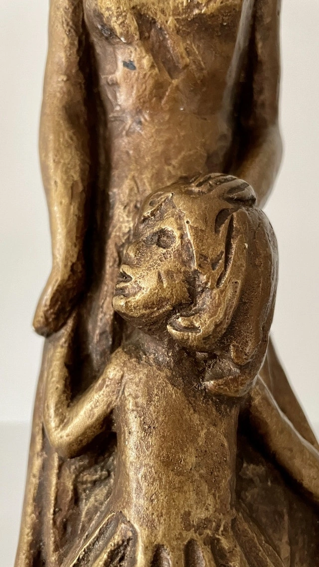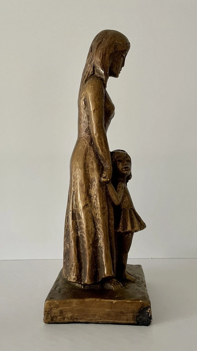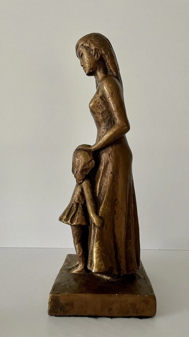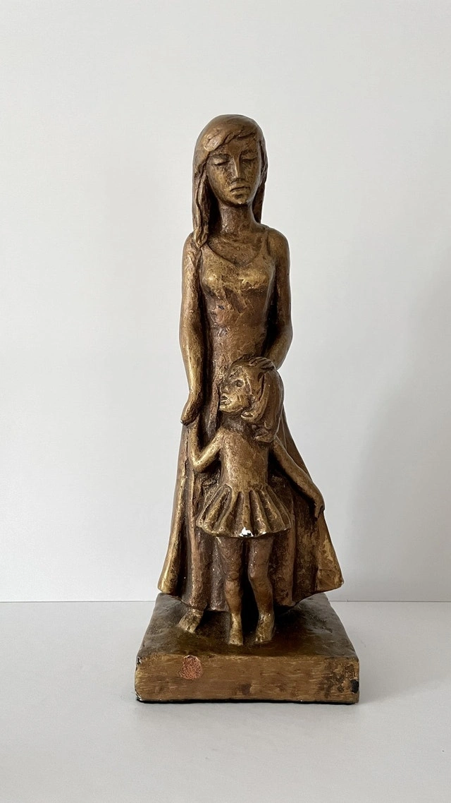 Vintage Leonardo Art Works Sculpture of a Mother and Girl. A signed Leonardo Art Works inc. Composition Sculpture of a Mother and Child circa 1967. It stands 12 1/2 inches tall and 4 1/2 inches wide.