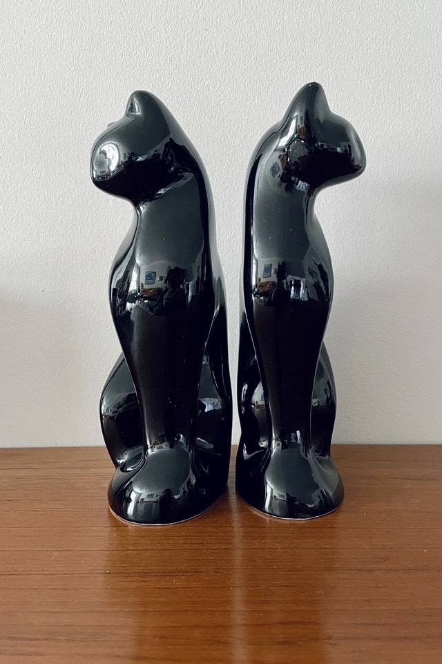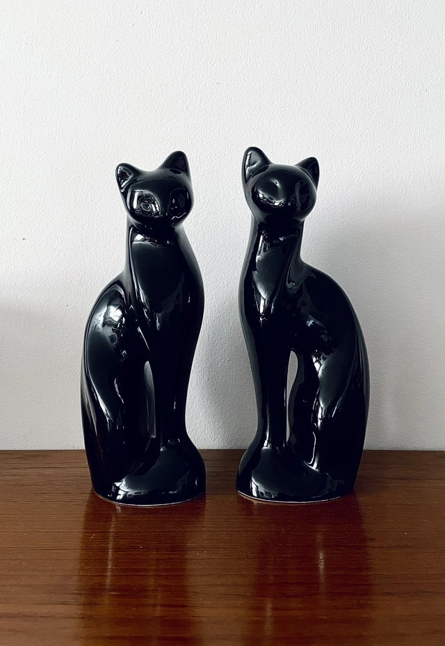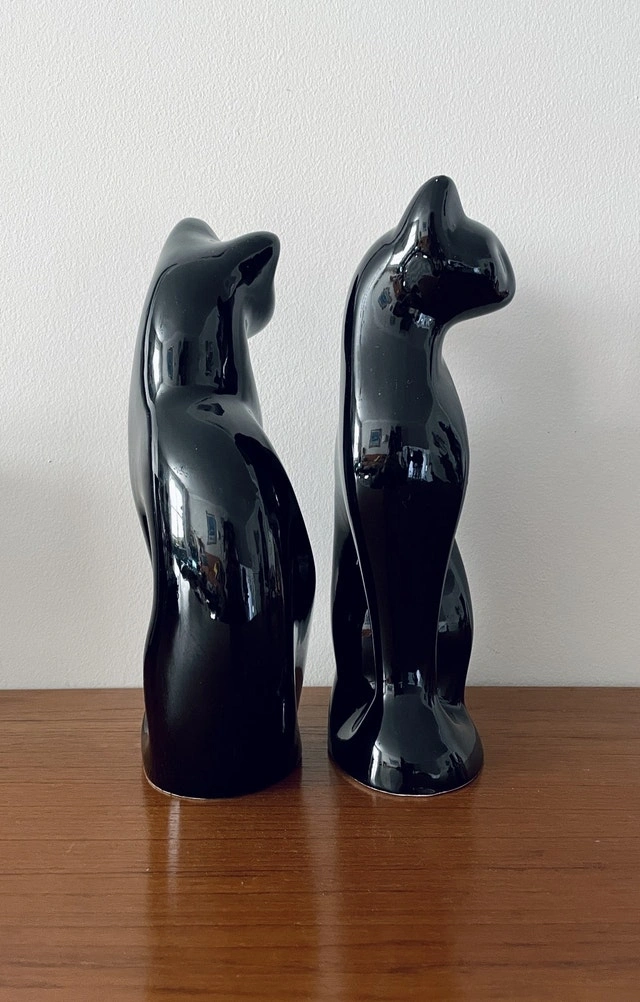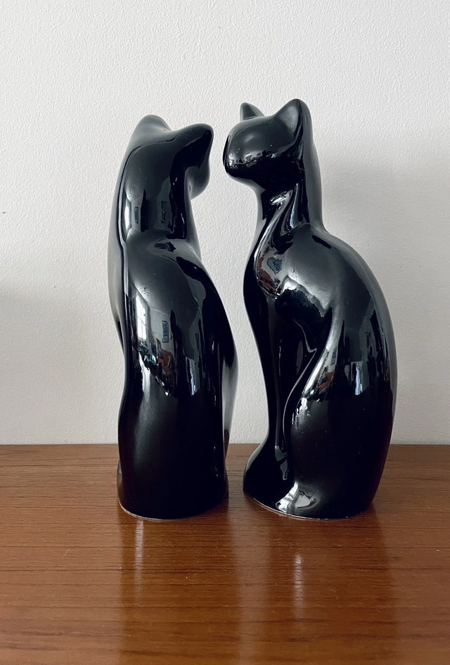 Excellent condition. No chips, no cracks. Highly glossy black cat statues. They stand 11-12” tall. Fantastic decorations for cat lovers.