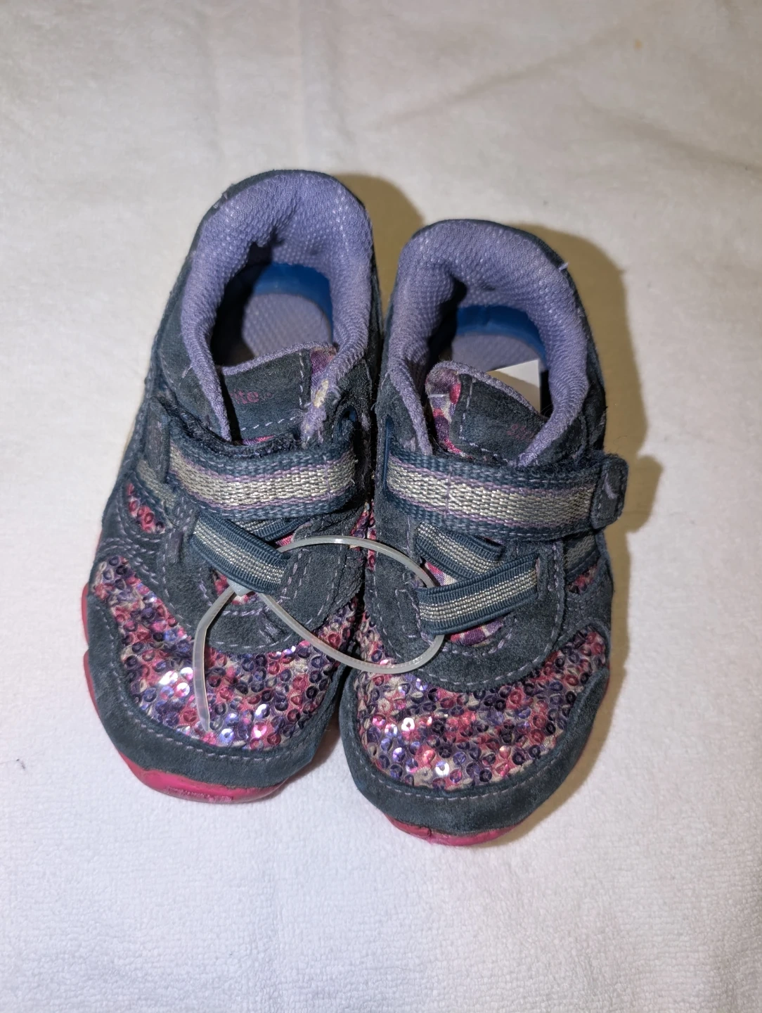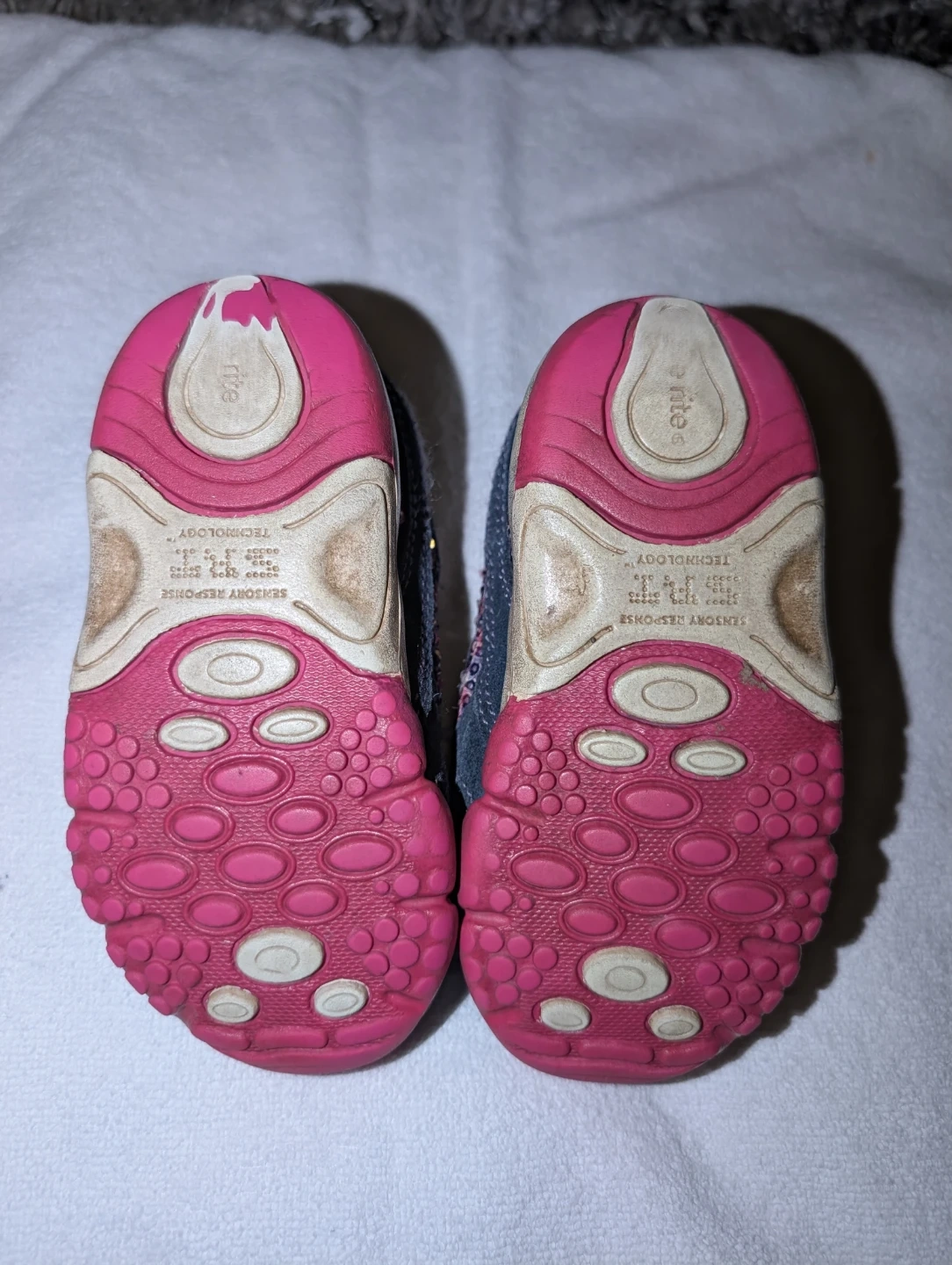 Girls size 5, Stride rite brand shoes with sensory response technology. Velcro closure. Small spot on the opening of the shoe by the velcro where the material has worn