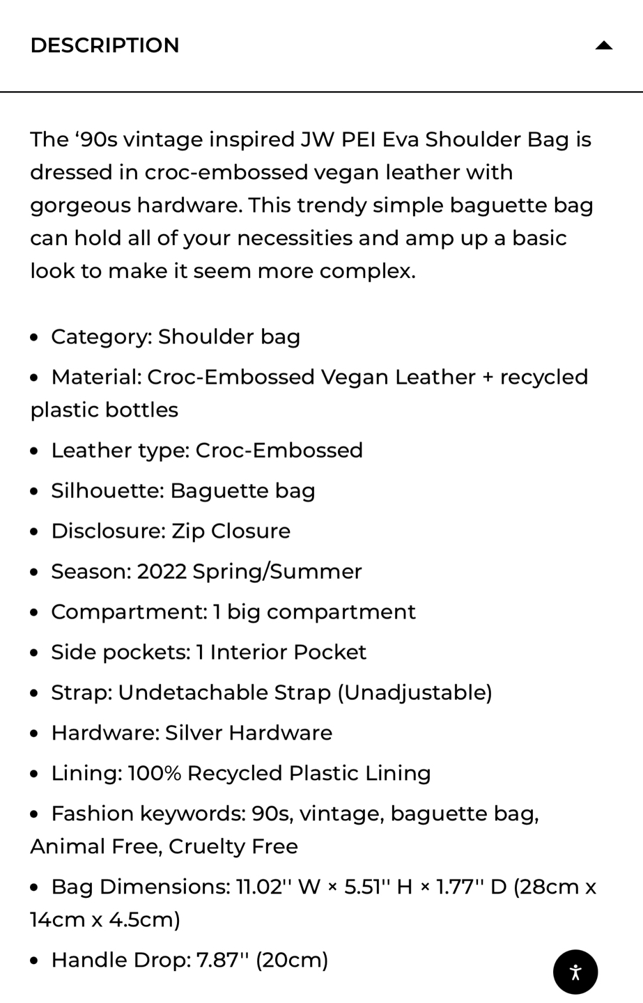 706JW PEI Eva Shoulder Bag in ivory croc. Never been used and still has original packaging. Retails for $66 CAD. Please check photos for product details! ❗️Needs to be gone by early July! Whatever isn’t picked up by then will be donated. Feel free to browse my other listings if you’re interested! If you purchase multiple items I can provide a discount. :) Condition: New Brand: JW PEI Size: 11.02'' W × 5.51'' H × 1.77'' D