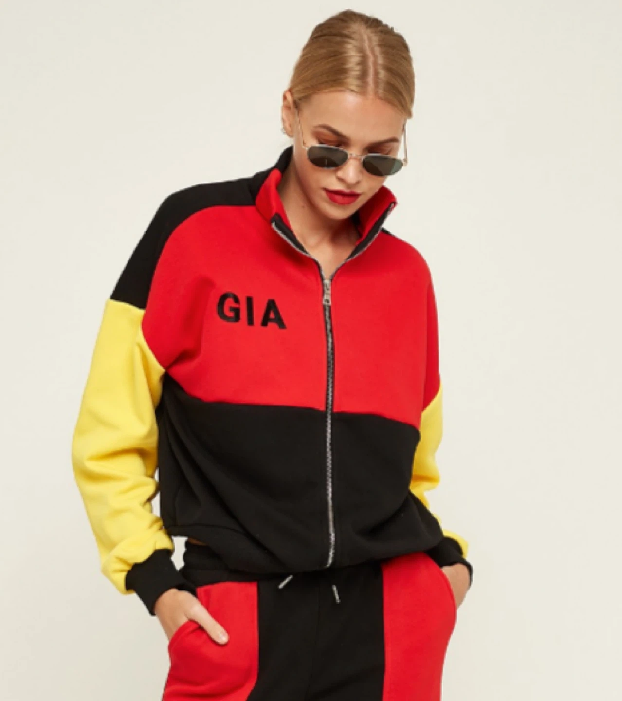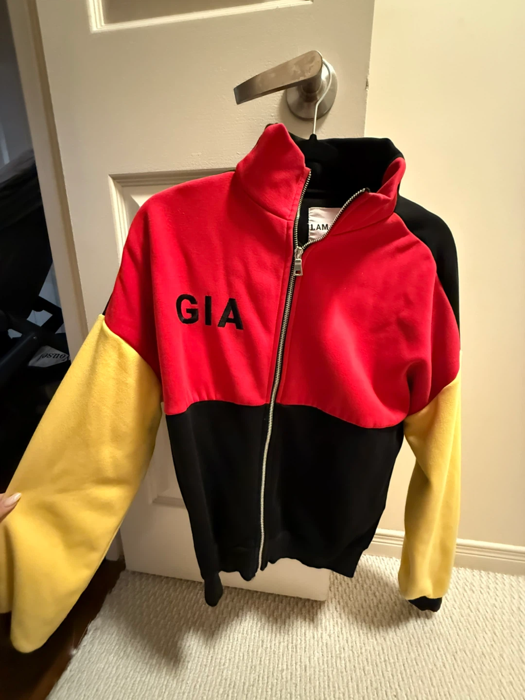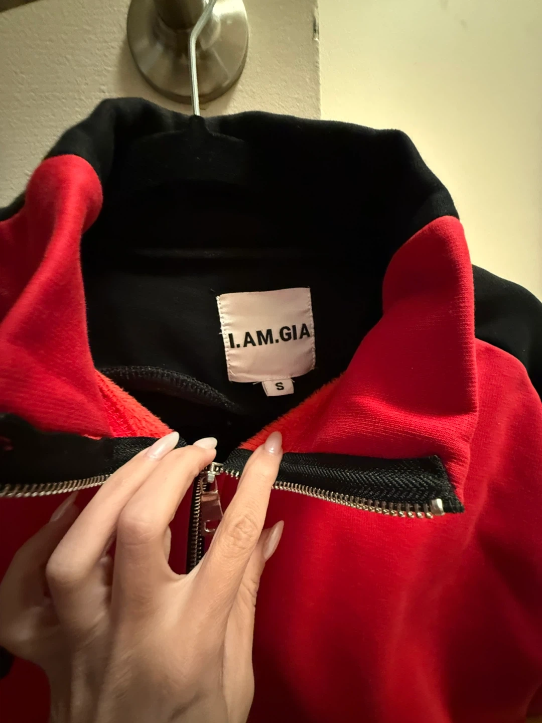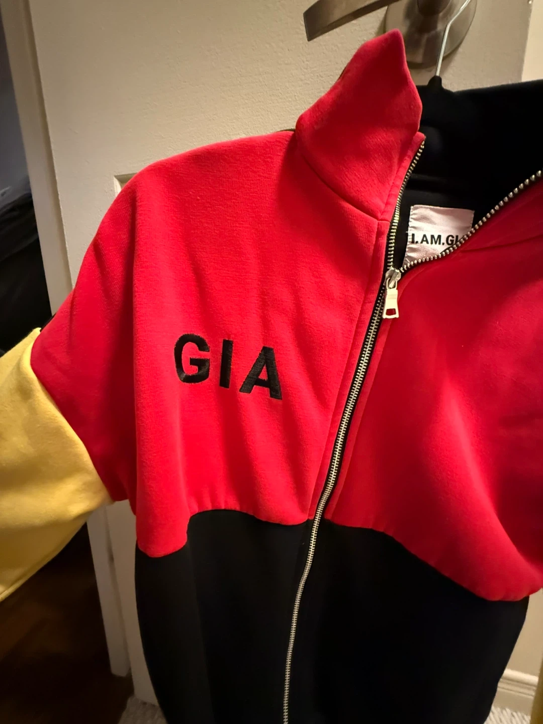 Selling a I.AM.GIA track jacket in a fun multicolor design! It features a front zipper and a sporty look. Perfect for adding a pop of colour to your wardrobe!