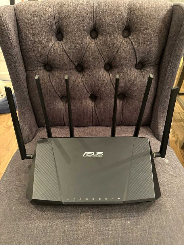 Get ready to enhance your home network with this ASUS RT-AC3200 wireless tri-band gigabit router, delivering speeds up to 3200Mbps for seamless streaming and gaming. This router is in used, but excellent condition and comes with its original power adapter and manual. Here are some specifications: