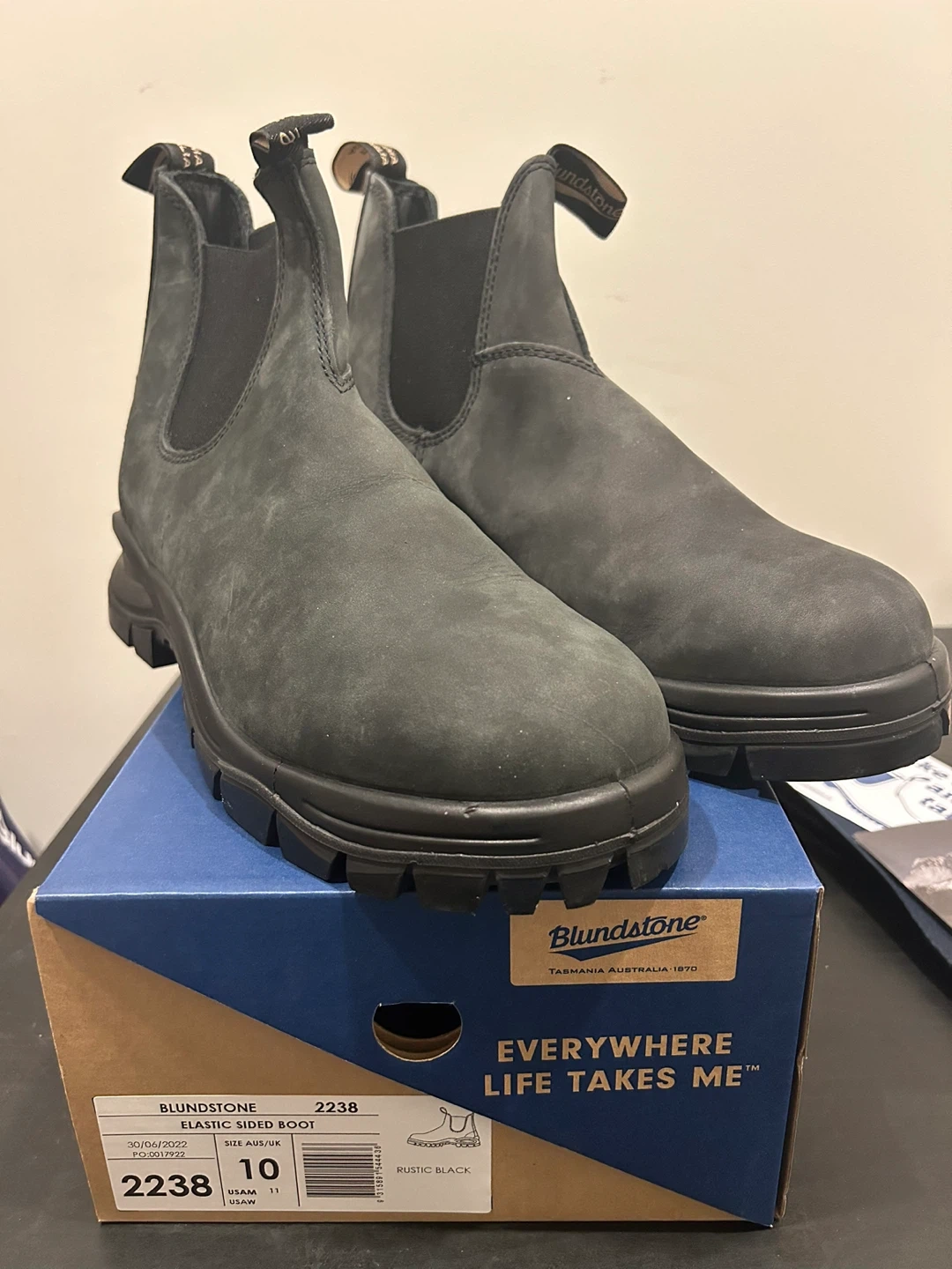 Selling a pair of Blundstone 2238 Elastic Sided Boots in Rustic Black, size 11 US/CA. They come with the original box.