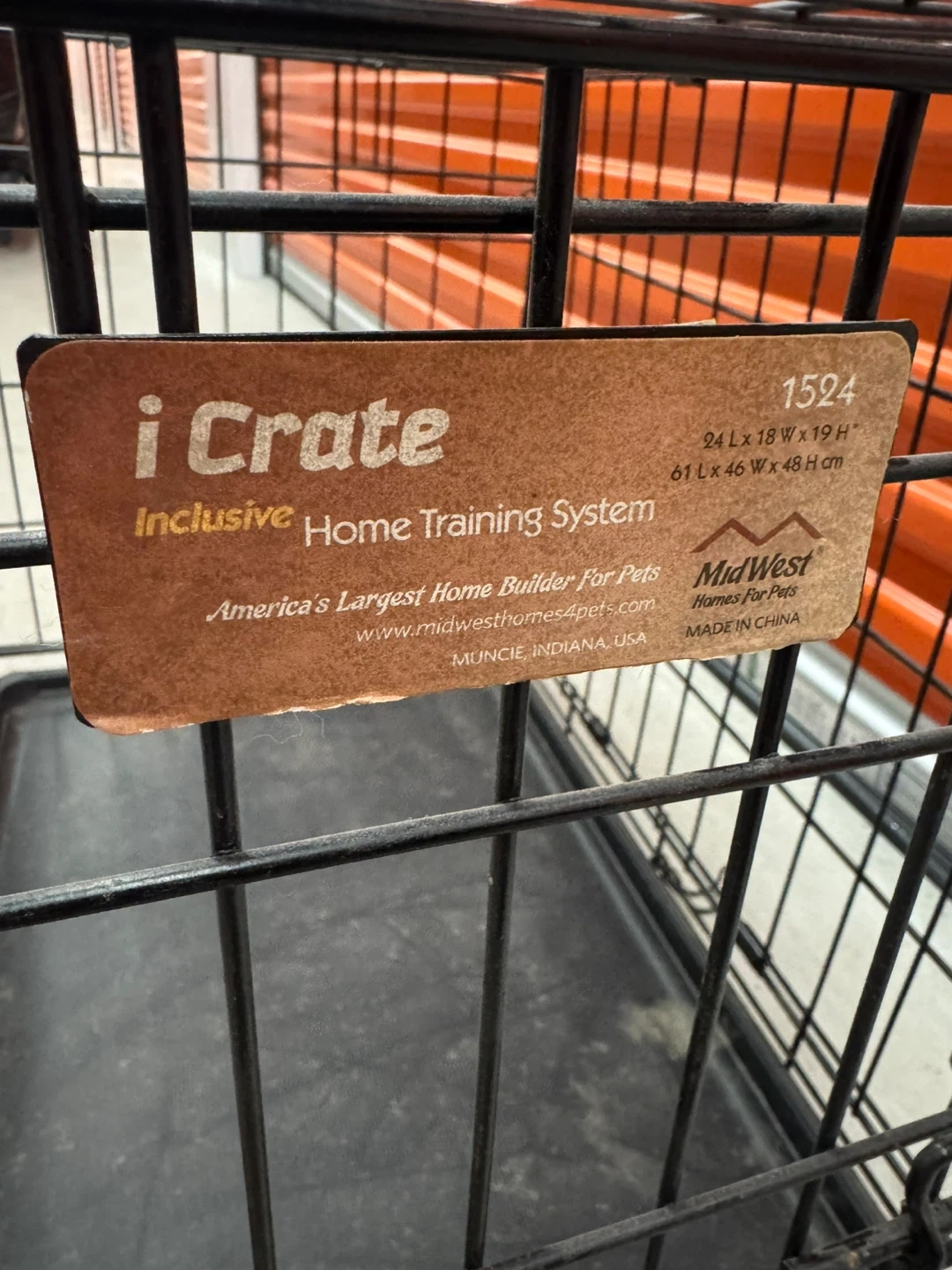 Selling a MidWest iCrate Inclusive Home Training System in black. It's 24 x 18 x 19 inches (61 x 46 x 48 cm). Perfect for training your furry friend!