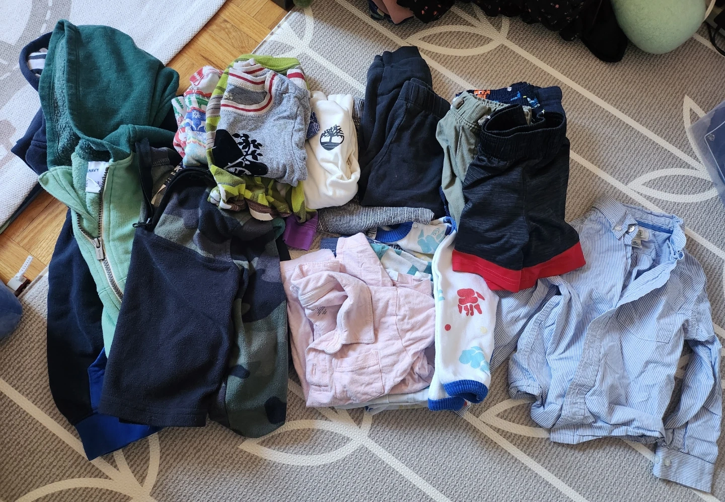 Includes sweaters, long sleeves, shorts, pants,, button up shirt, short sleeves