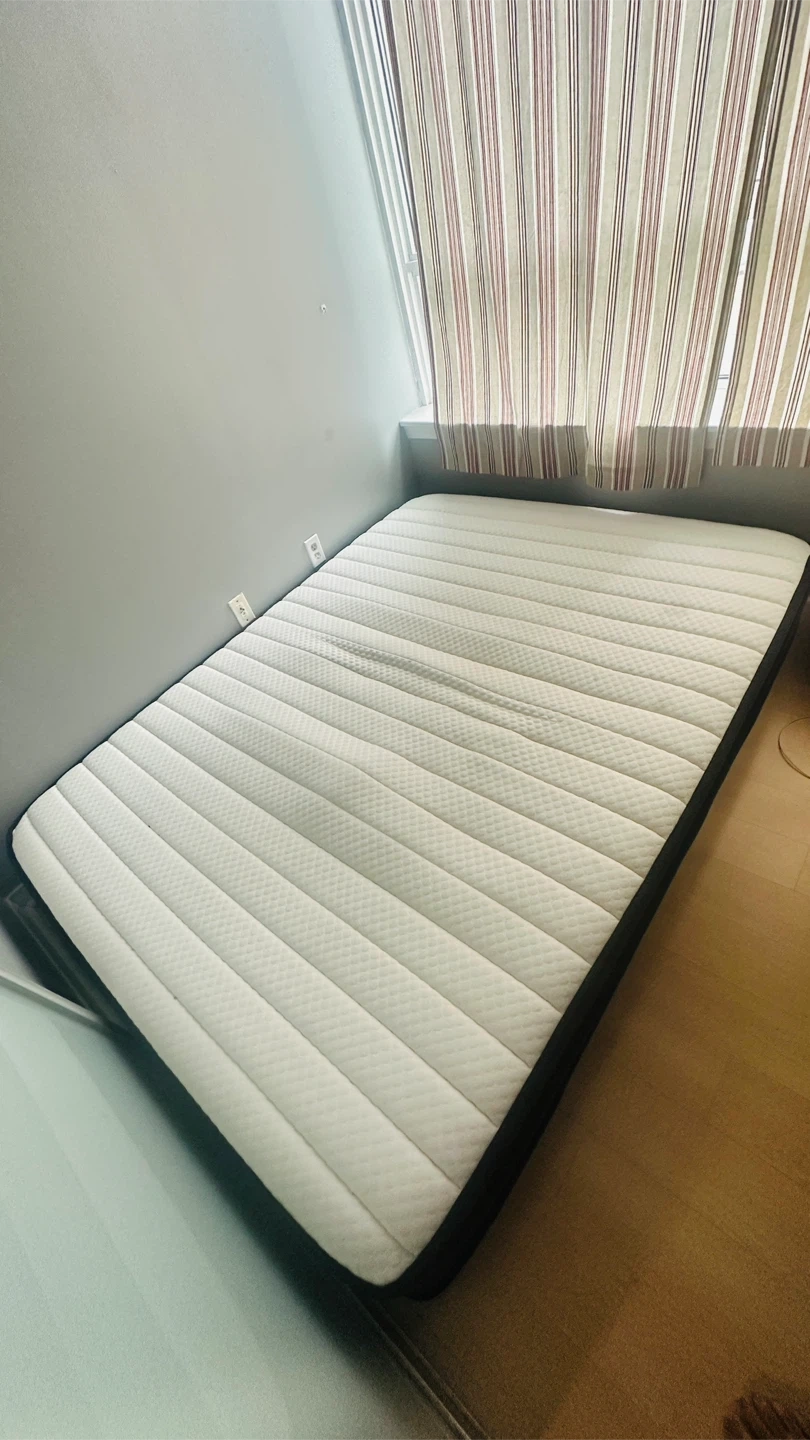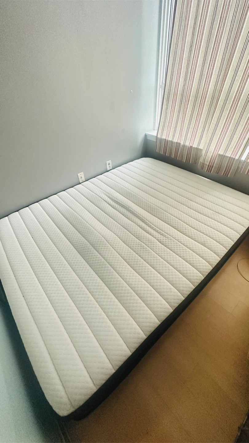 Selling a mattress with a knitted fabric cover. It features fireproof and high-density foam for safety and support. Enhanced pocket springs provide strong support and edge high-density foam offers edge support