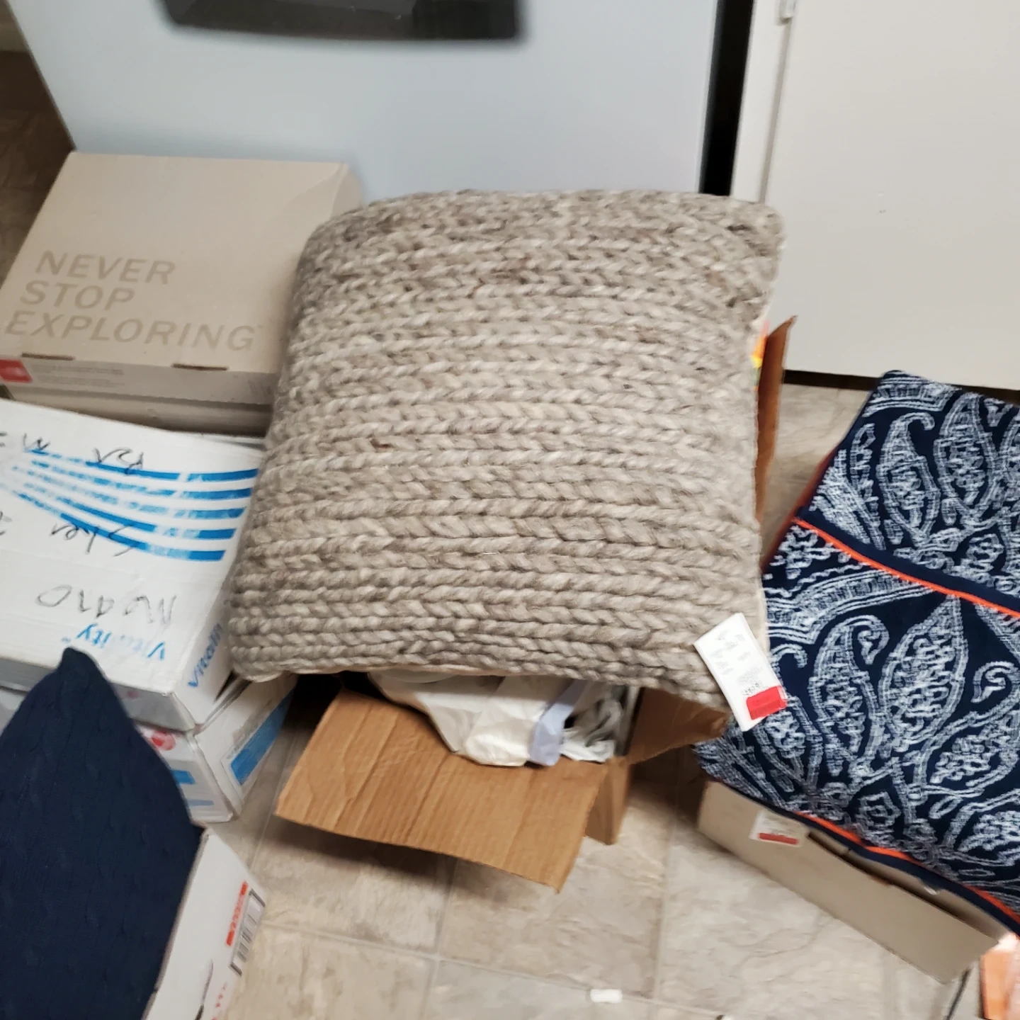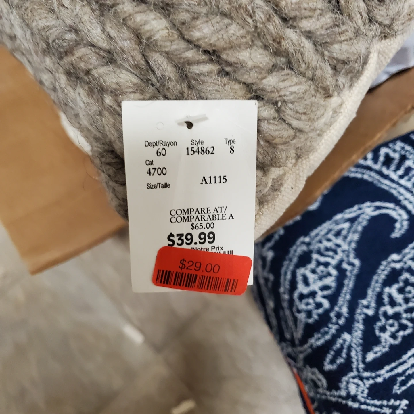 Here's a braided throw pillow in a neutral colour! The tag shows a style number of 154862 and a size of 8. It was originally priced at $65, but I got it for $39.99