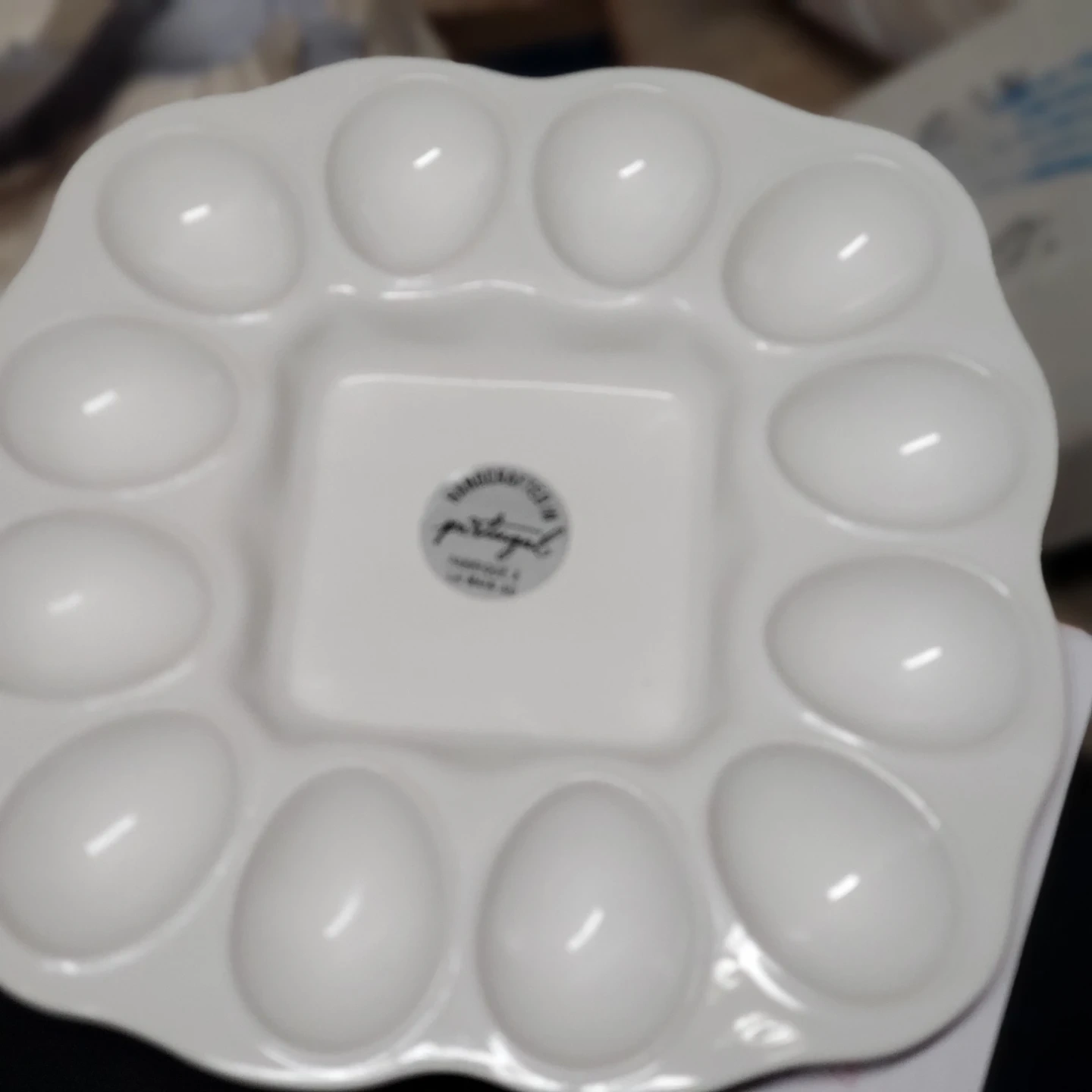 Selling a Bordallo Pinheiro egg tray. It's in great shape and perfect for serving eggs at your next brunch! The tray is white and features a unique design.