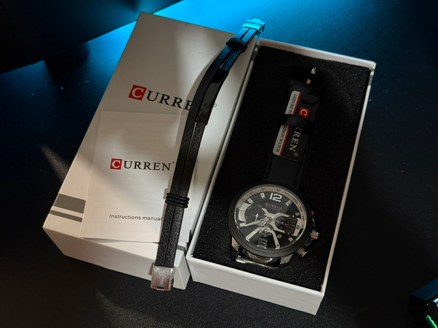 I'm selling a brand new Curren men's fashion watch that comes with a matching bracelet! This set is still in its original box and includes the watch, bracelet, and instructions manual. The watch features a stylish design and the bracelet complements it perfectly. Great as a gift or for yourself! Japan movement. On Amazon, the same watch sells for $32. I'll give it for $25+ a bracelet as a gift.