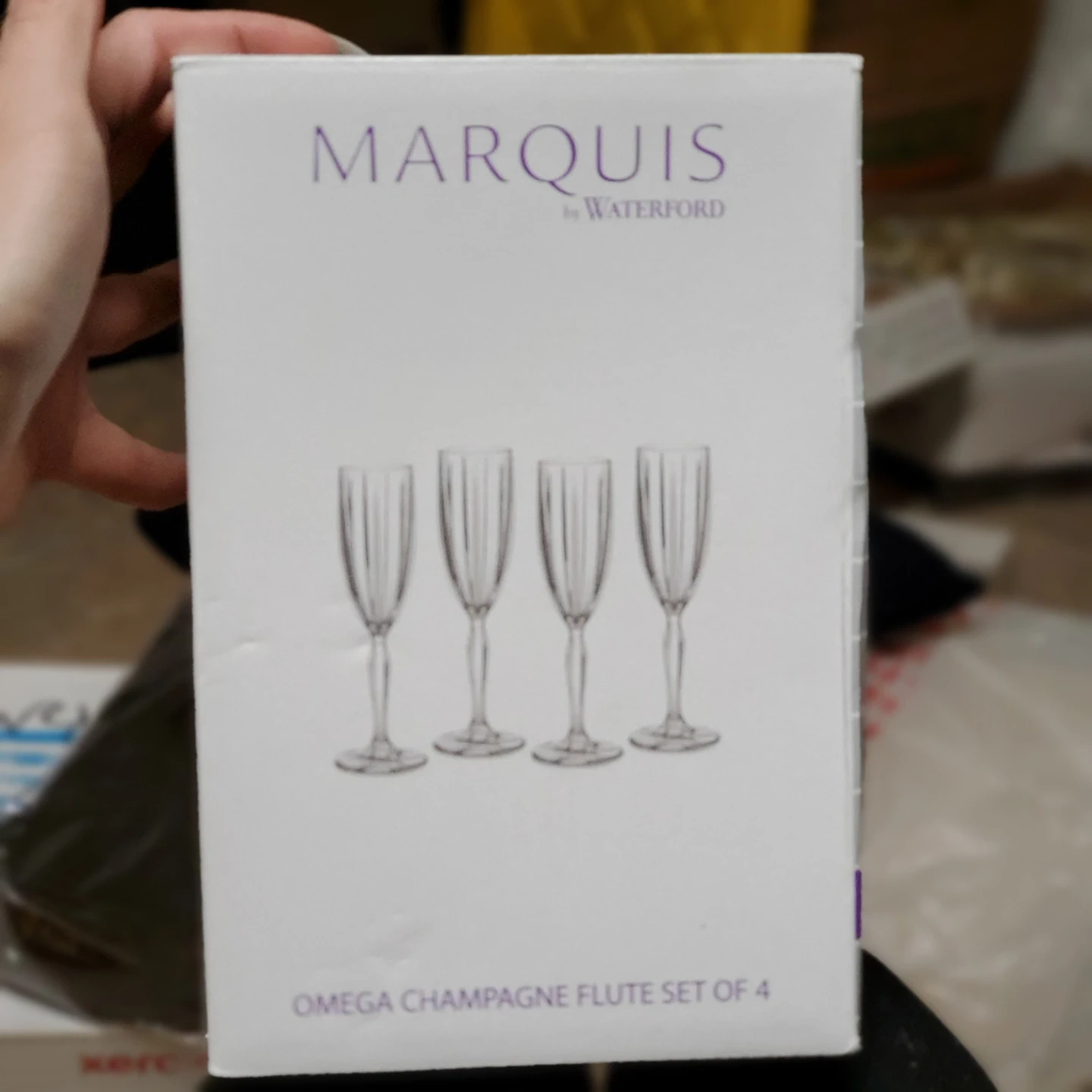Selling a set of 4 Marquis by Waterford Omega champagne flutes. They come in their original box and are in great condition! Perfect for adding a touch of elegance to any celebration