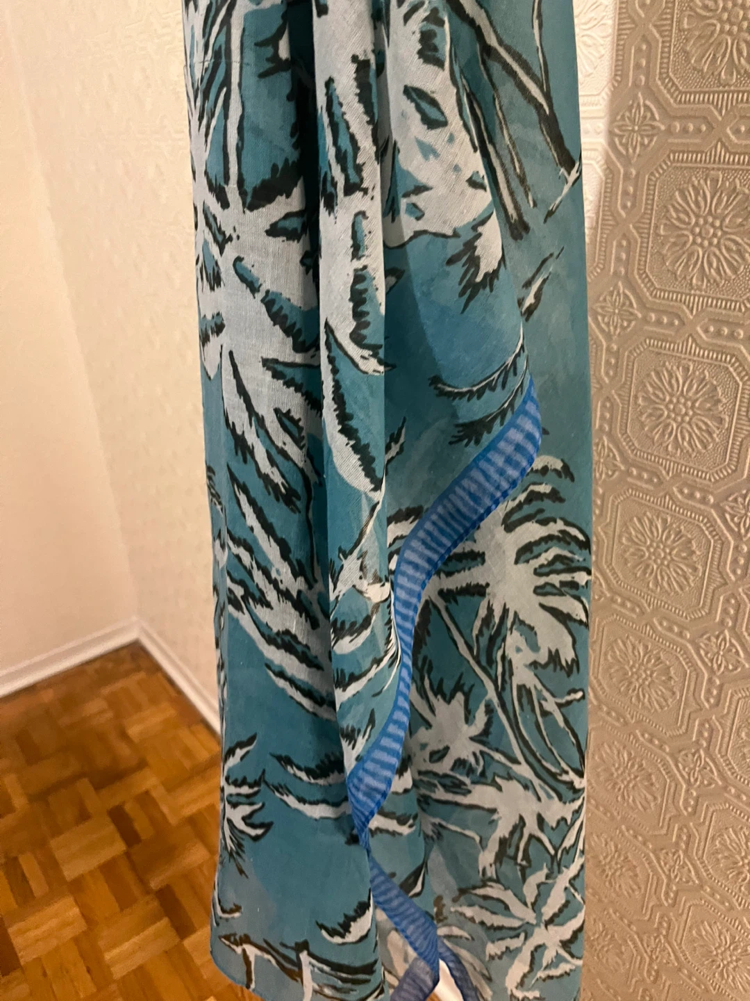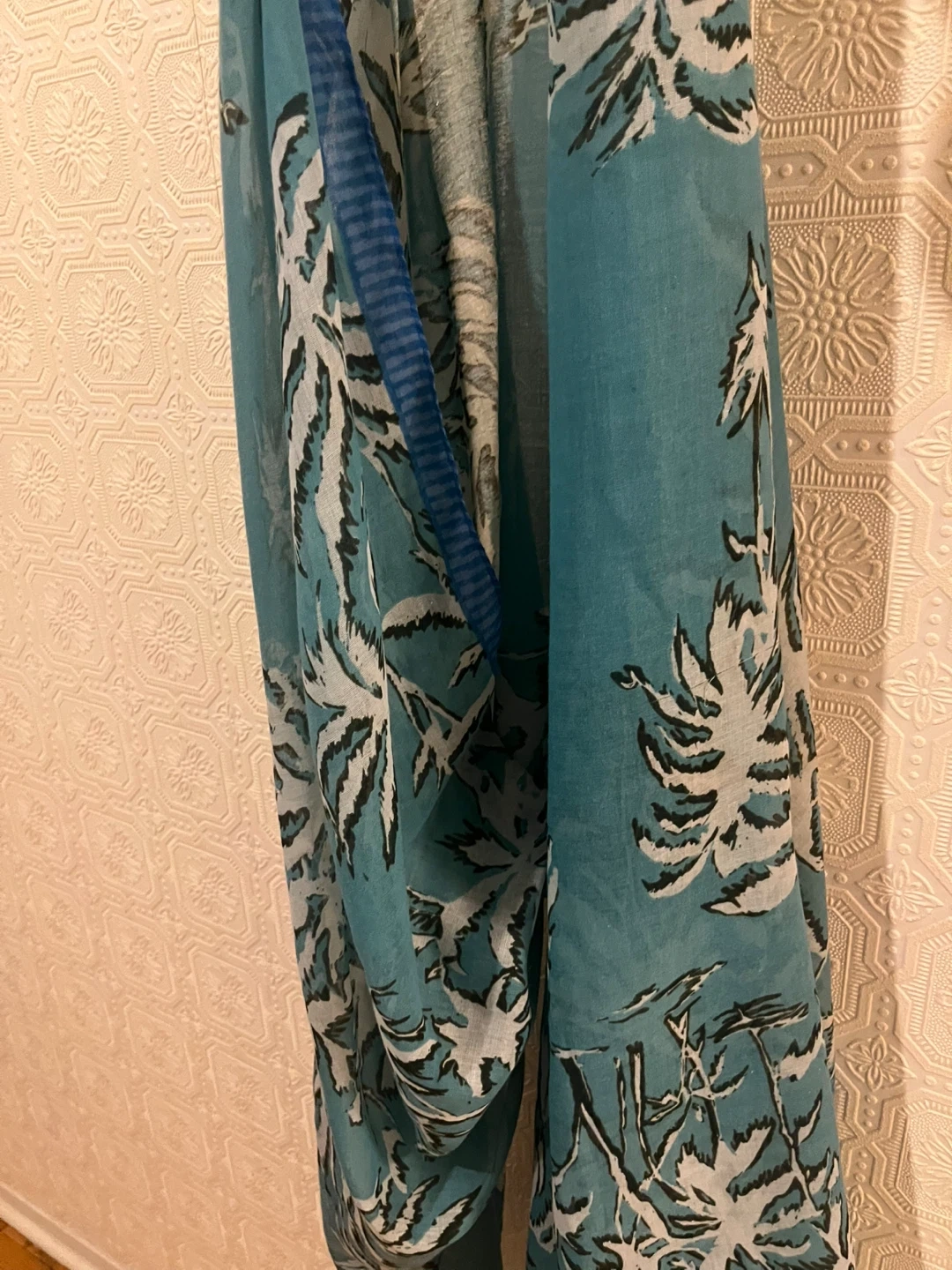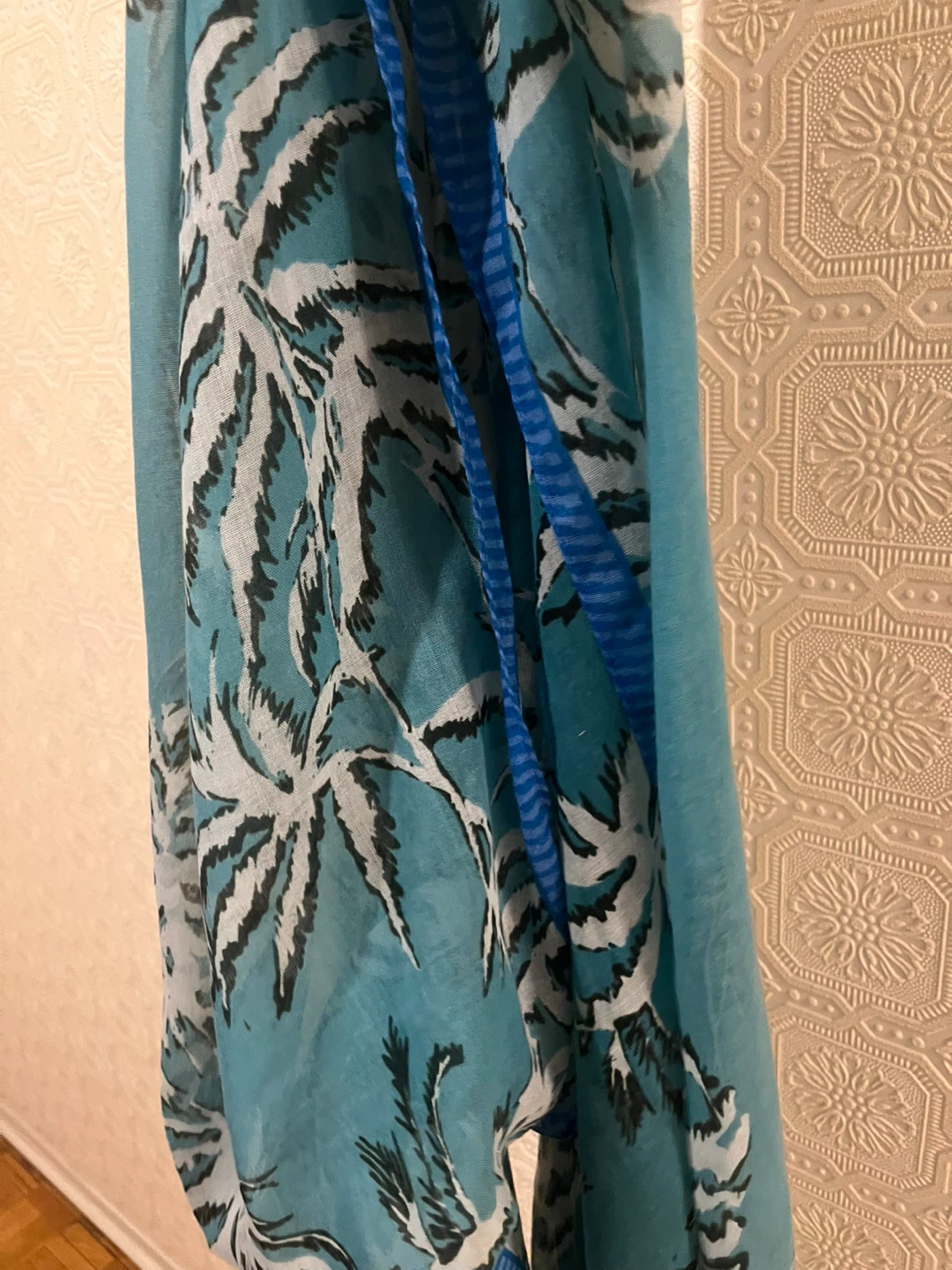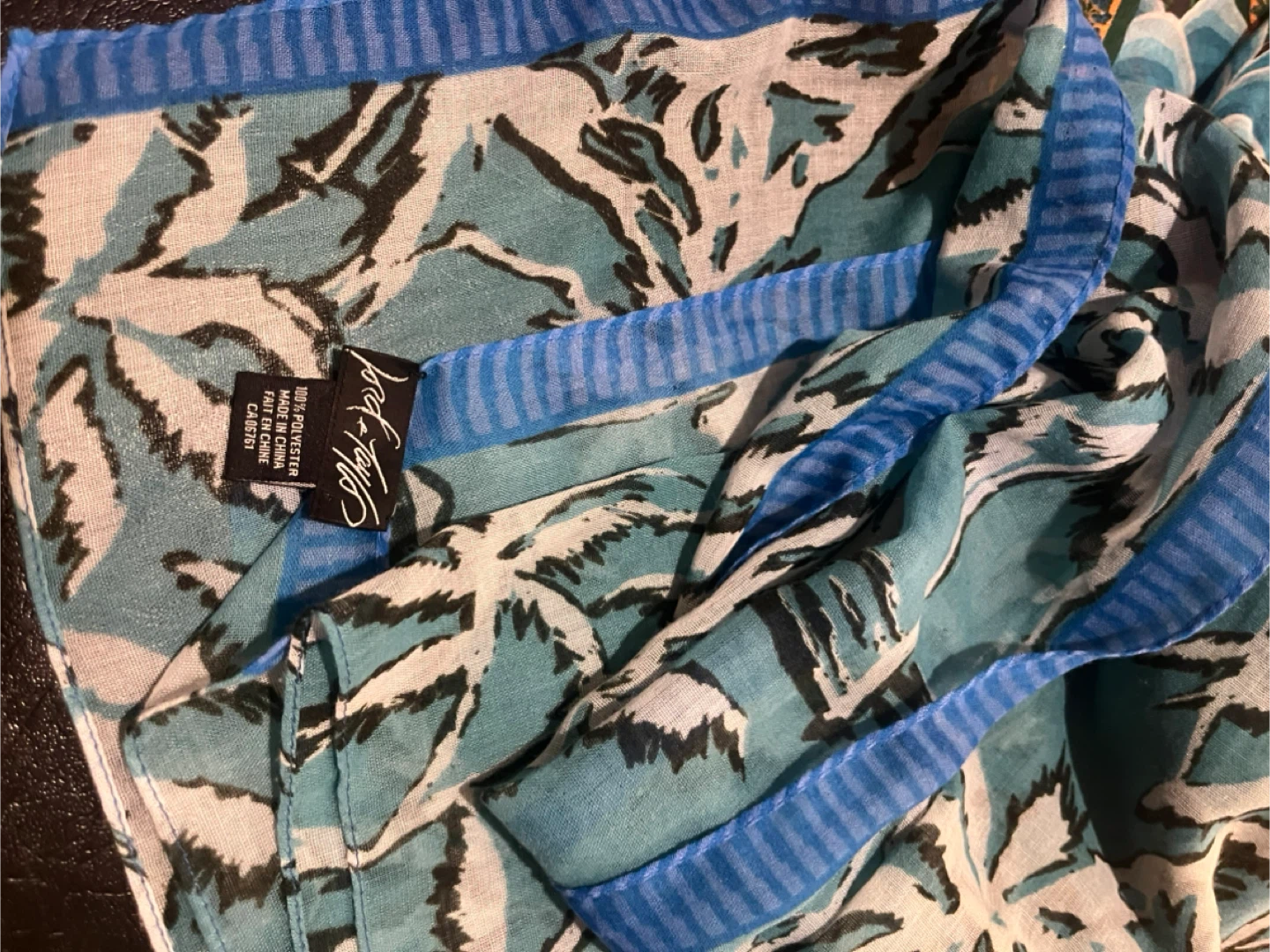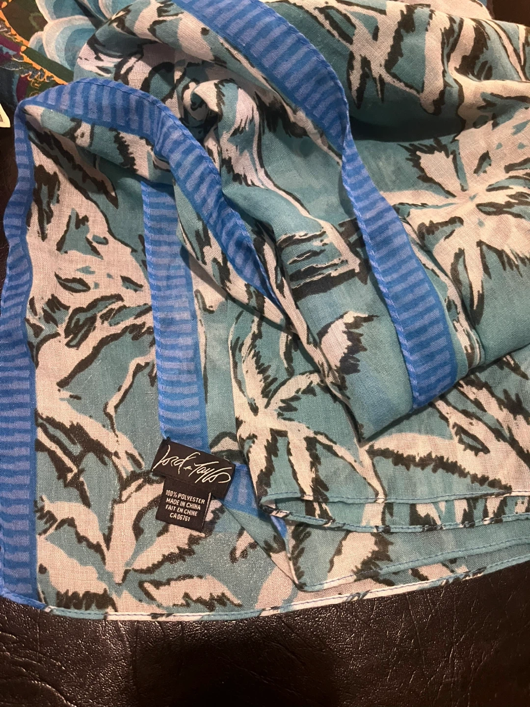 This is a lord n Taylor scarf with a beautiful blue pattern. It's made of 100% polyester and is in great condition!