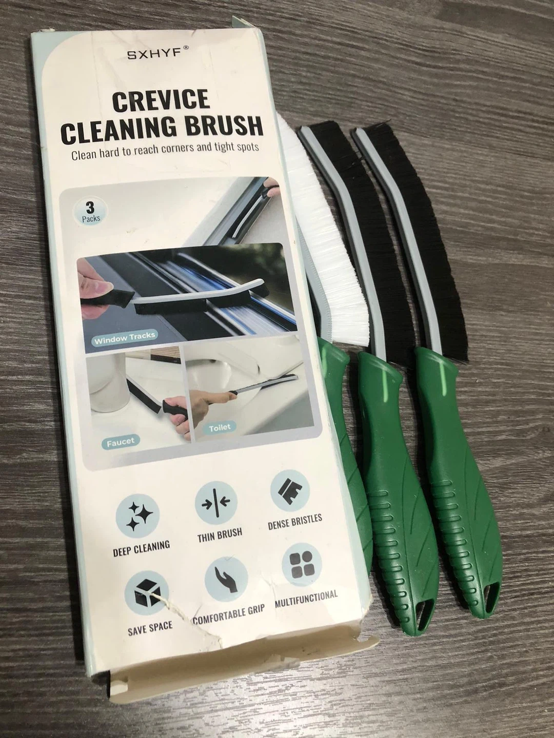 I'm selling a brand new, still-in-box SXHYF Crevice Cleaning Brush set. It comes with 3 brushes, perfect for cleaning hard-to-reach corners and tight spots in your home. The brushes feature dense bristles and a comfortable grip, making cleaning easier and more effective. They're great for window tracks, faucets, toilets, and other small spaces. The brushes are designed to save space and are multifunctional, suitable for grout lines, sinks, corners, base boards, fridge gaskets, furniture, bathroom tub, closet, door tracks, bird feeders, and cars