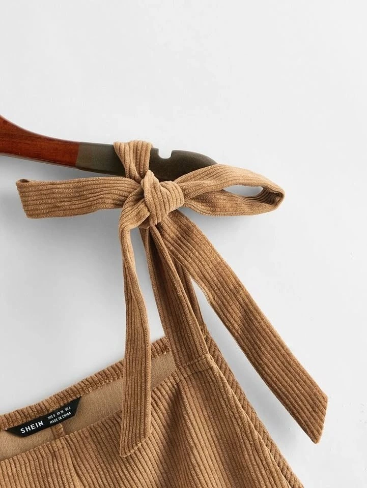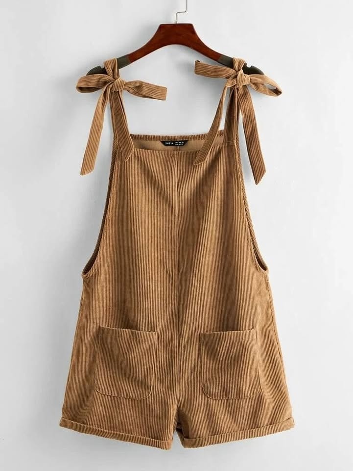 SHEIN Brown corduroy overalls/rompers with bow shoulder straps and pockets - XS