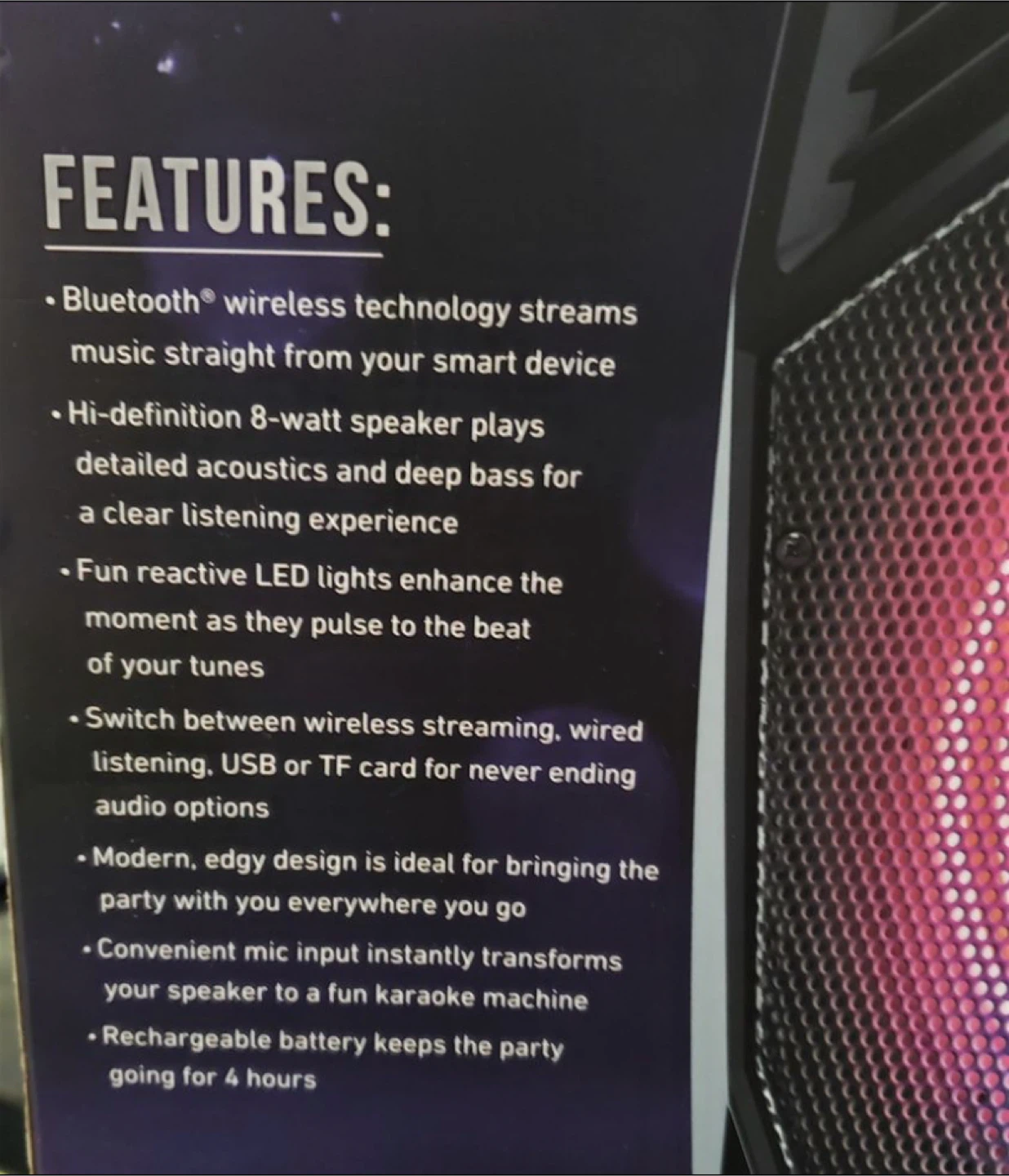 Selling a brand new Art+Sound Surge Flow wireless LED tailgate speaker! It comes in its original box.