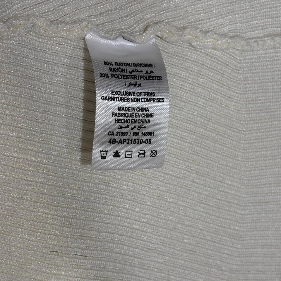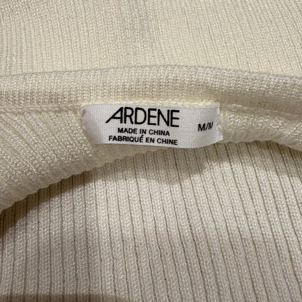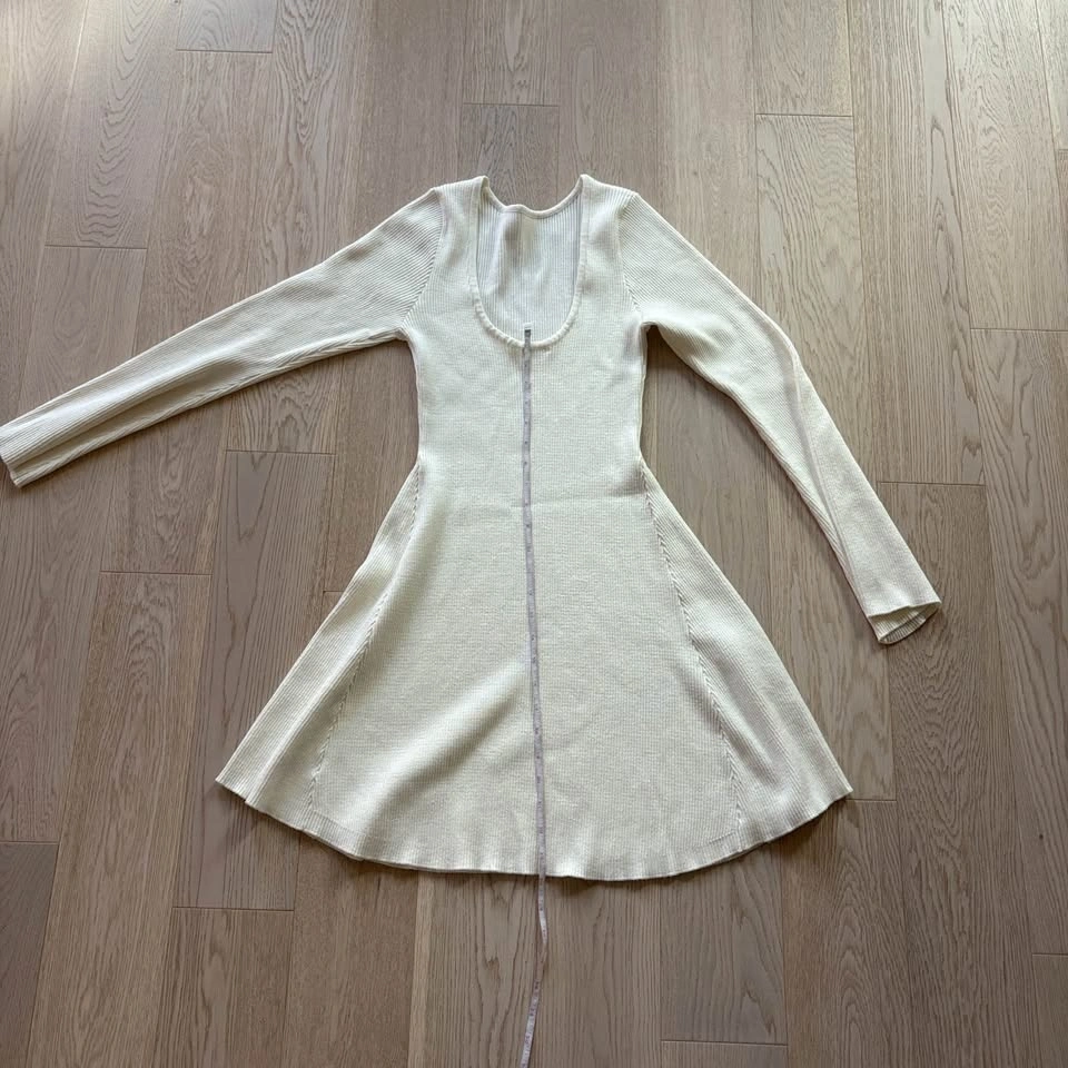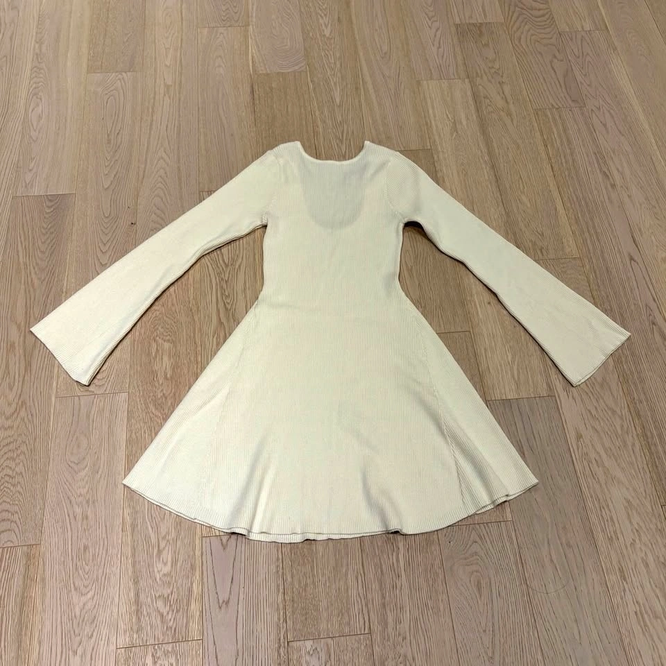 Ardene Ribbed Cream White Long-Sleeve Dress - Medium