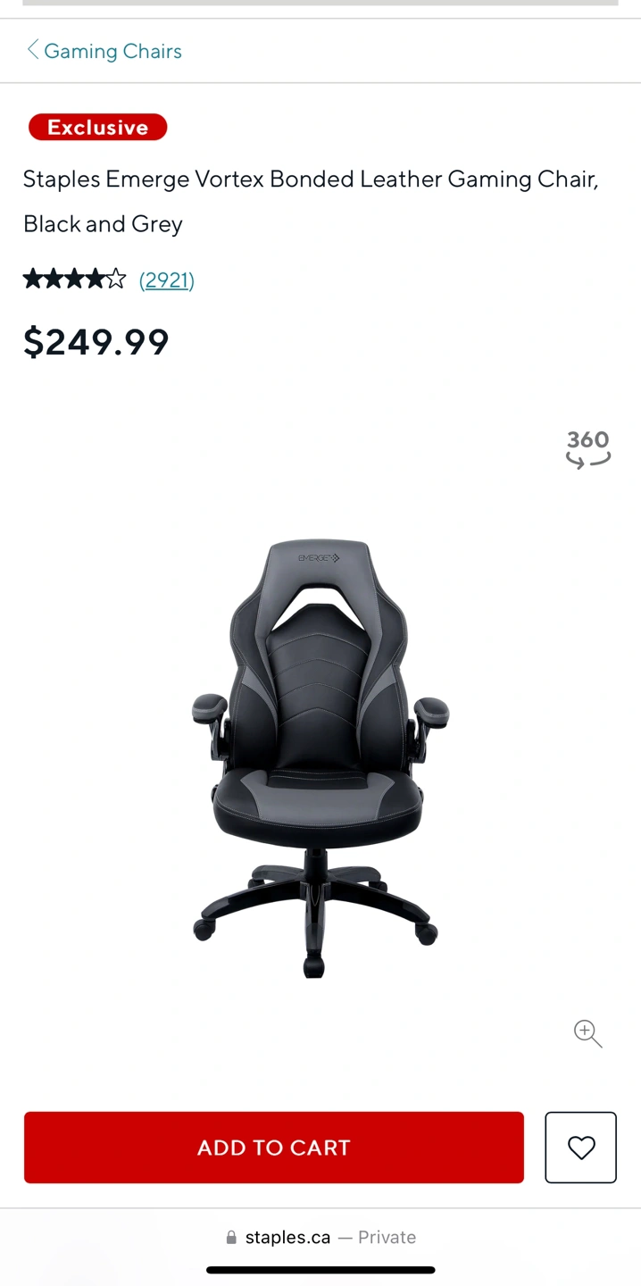Staples Emerge bonded leather gaming chair.