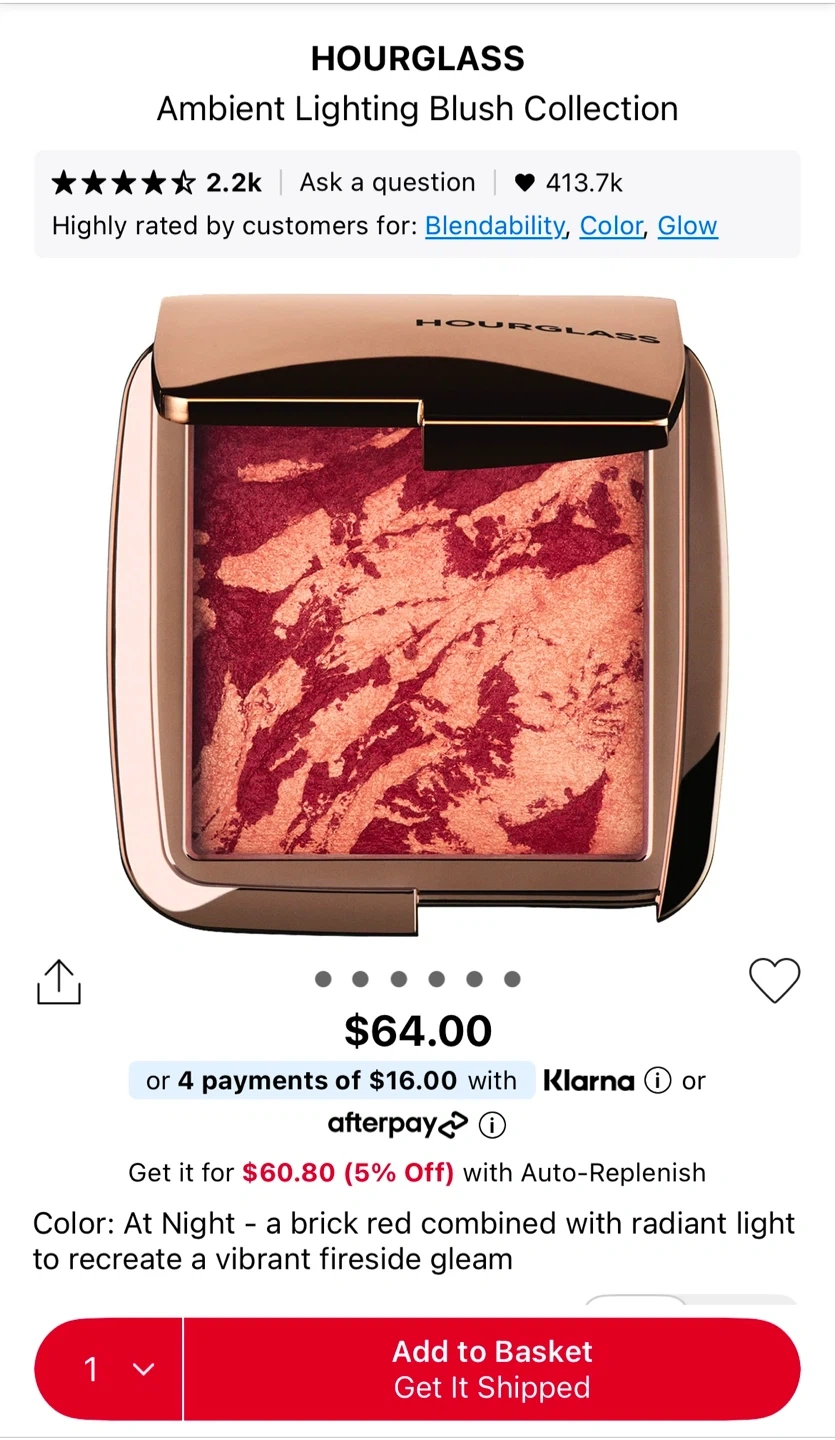Selling an Hourglass Ambient Lighting Blush in the shade At Night! It's a beautiful brick red combined with radiant light. The original price was $64, and it comes with the box and directions for use