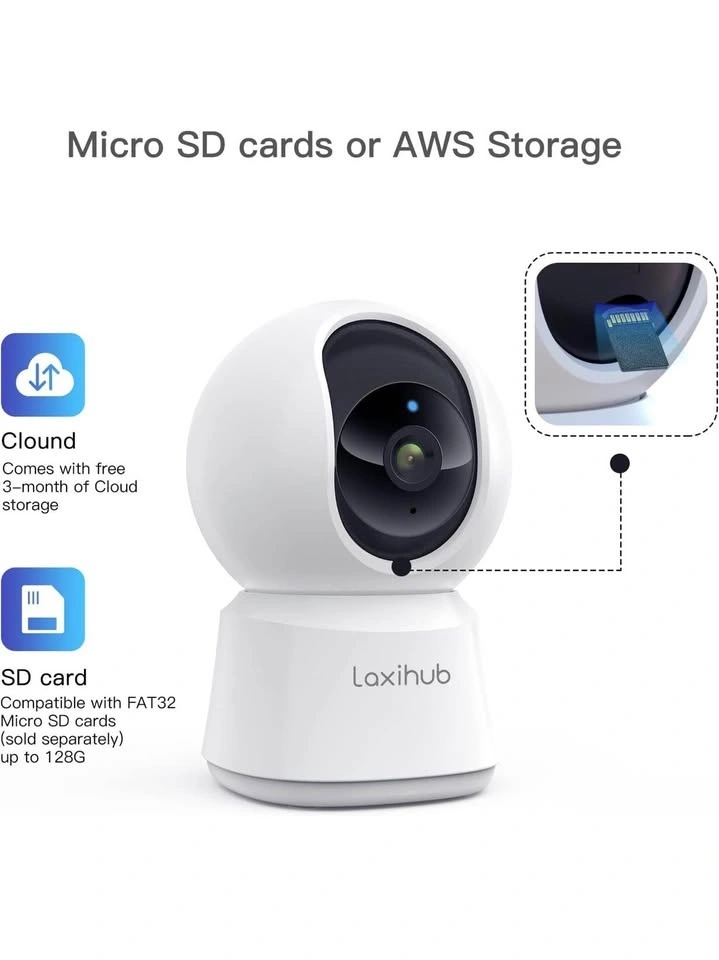 Laxihub P2 or P2T indoor pan-tilt Wi-Fi smart security camera.