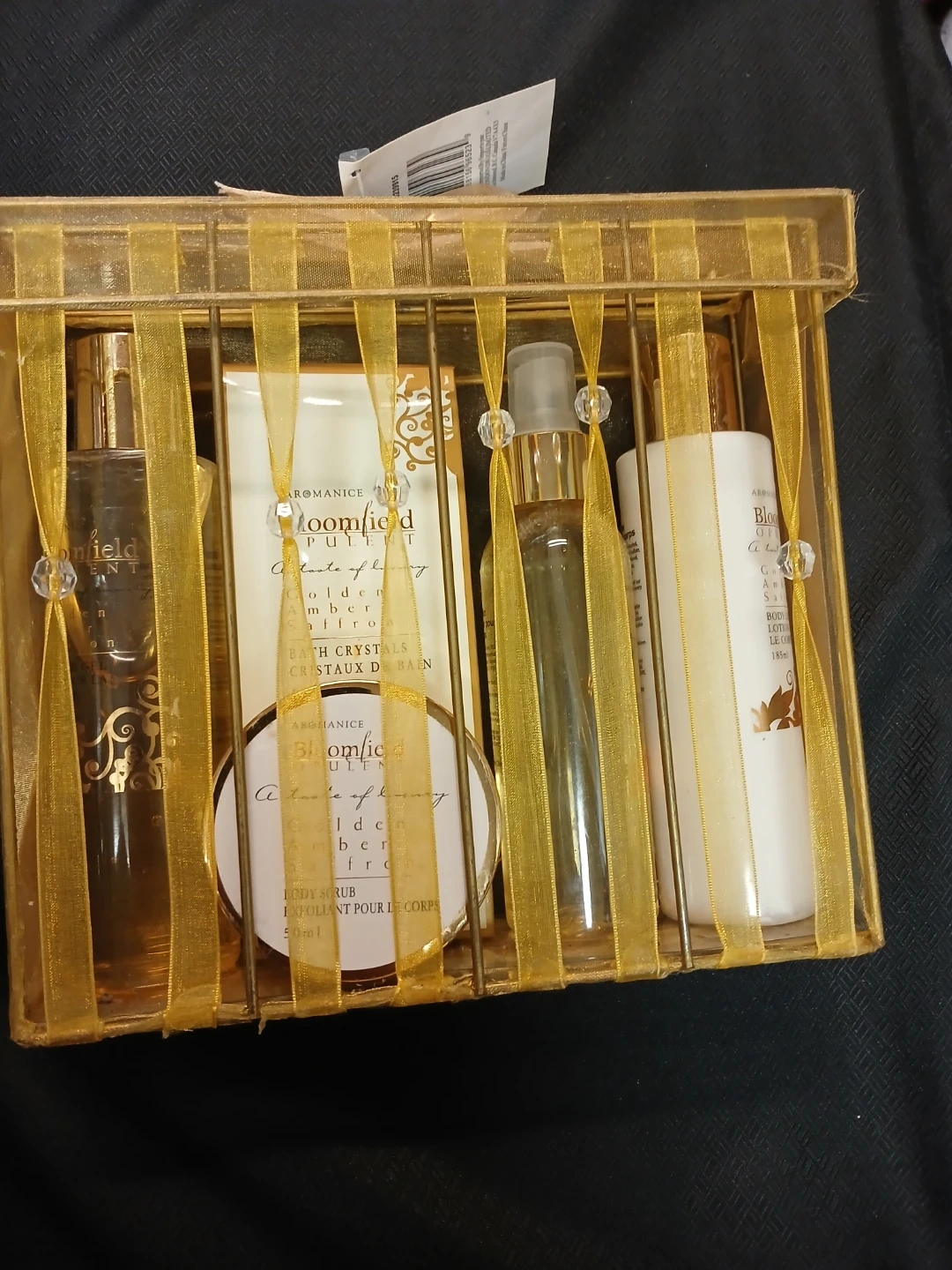 Treat yourself or someone special with this luxurious bath gift set from Bloomfield Opulent! The Golden Amber Saffron scent is a taste of luxury. This set includes a variety of bath products to delight the senses and hydrate the skin.