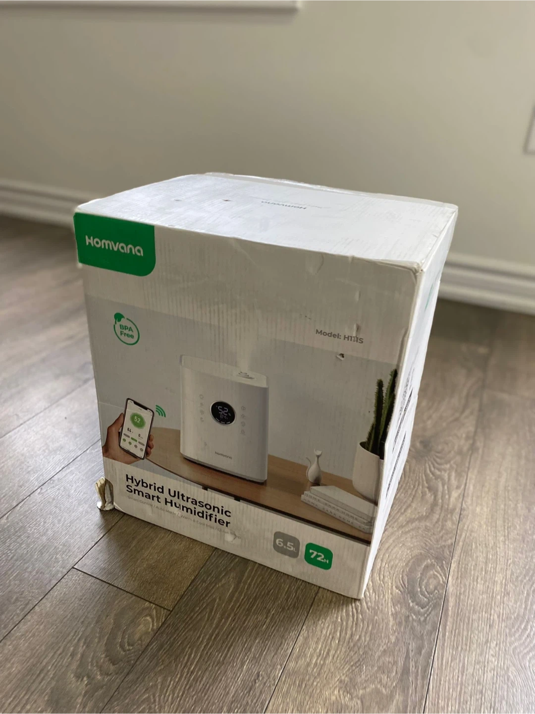 I'm selling a brand new Homvana Smart Hybrid Ultrasonic Humidifier! It comes with the box and all components, including the Homvana App Guide. It's a great way to keep the air in your home comfortable and healthy. Feel free to message me with any questions!