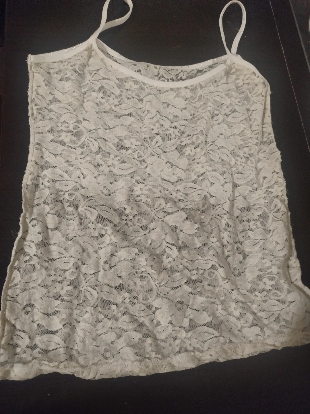 Selling a cute white lace cami top! It's in good condition and would be a great addition to your wardrobe. Perfect for layering or wearing on its own during warmer weather