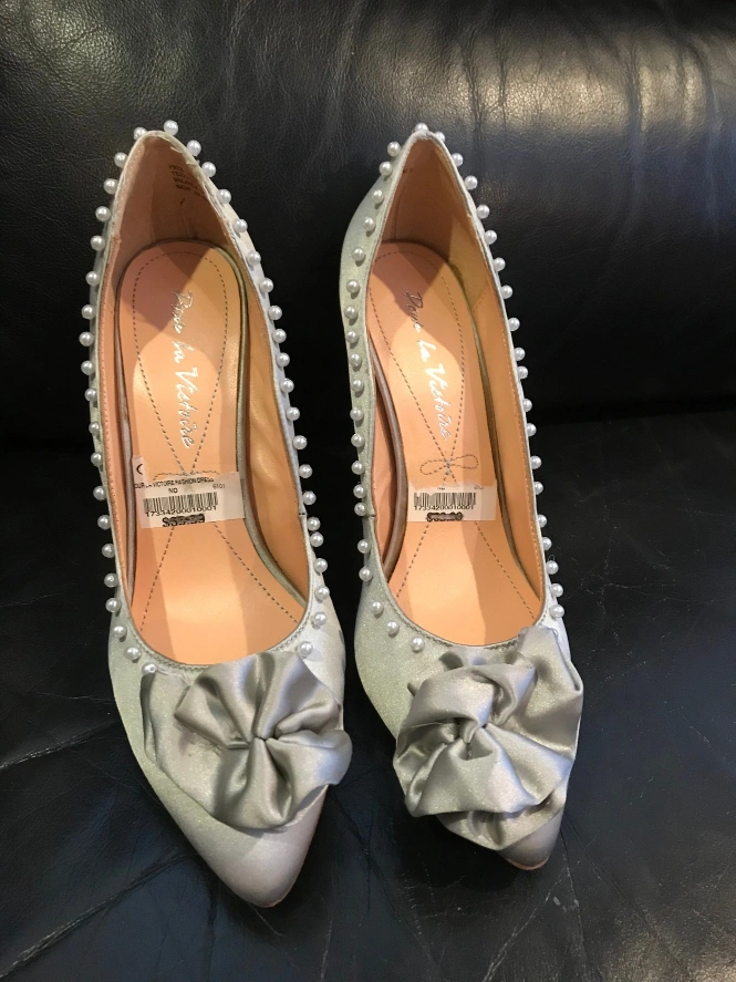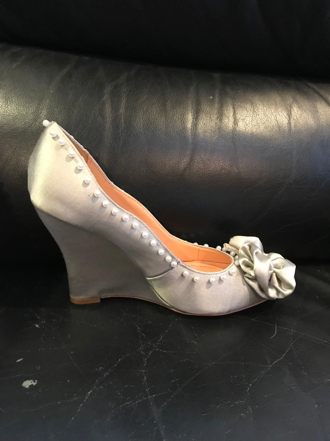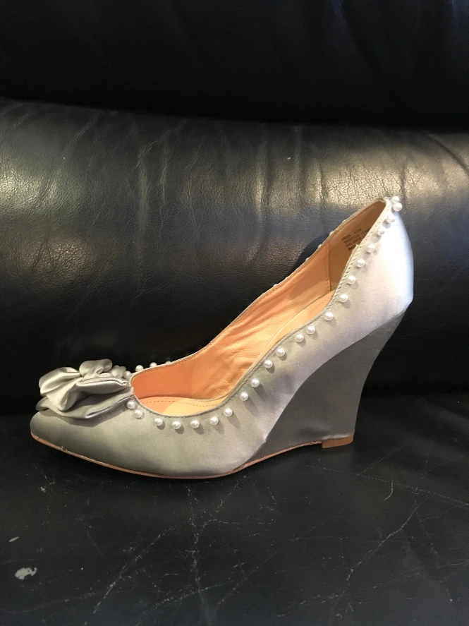 Pour La Victorie Wedge heel shoes with fake pearls are new and in great condition.