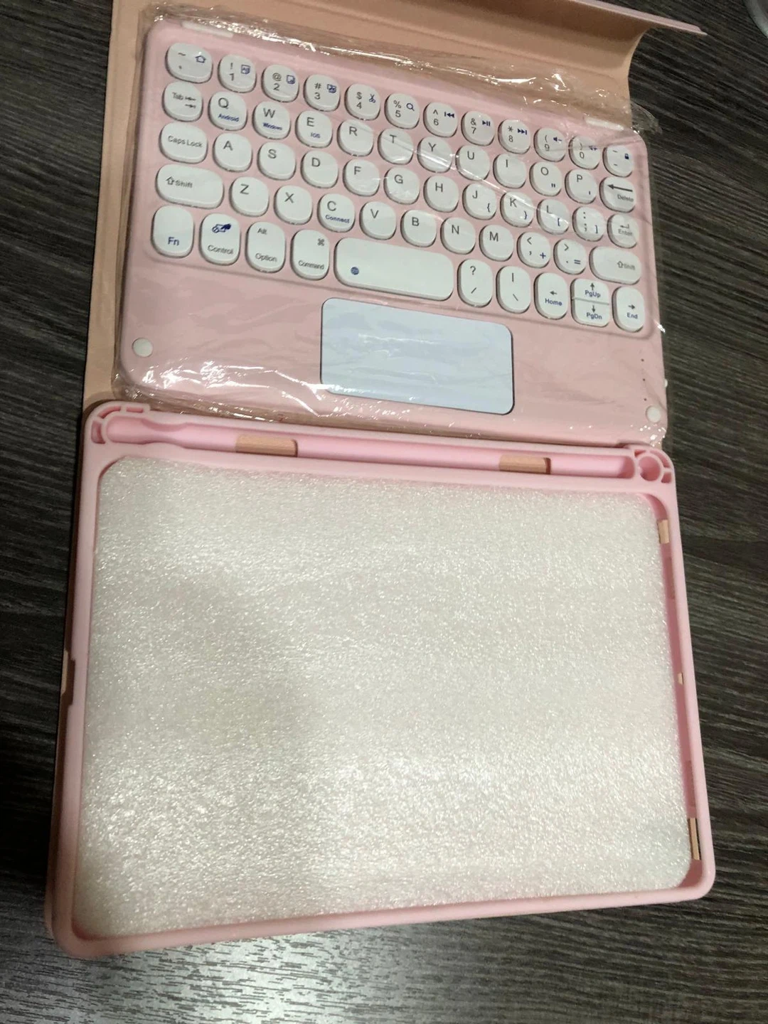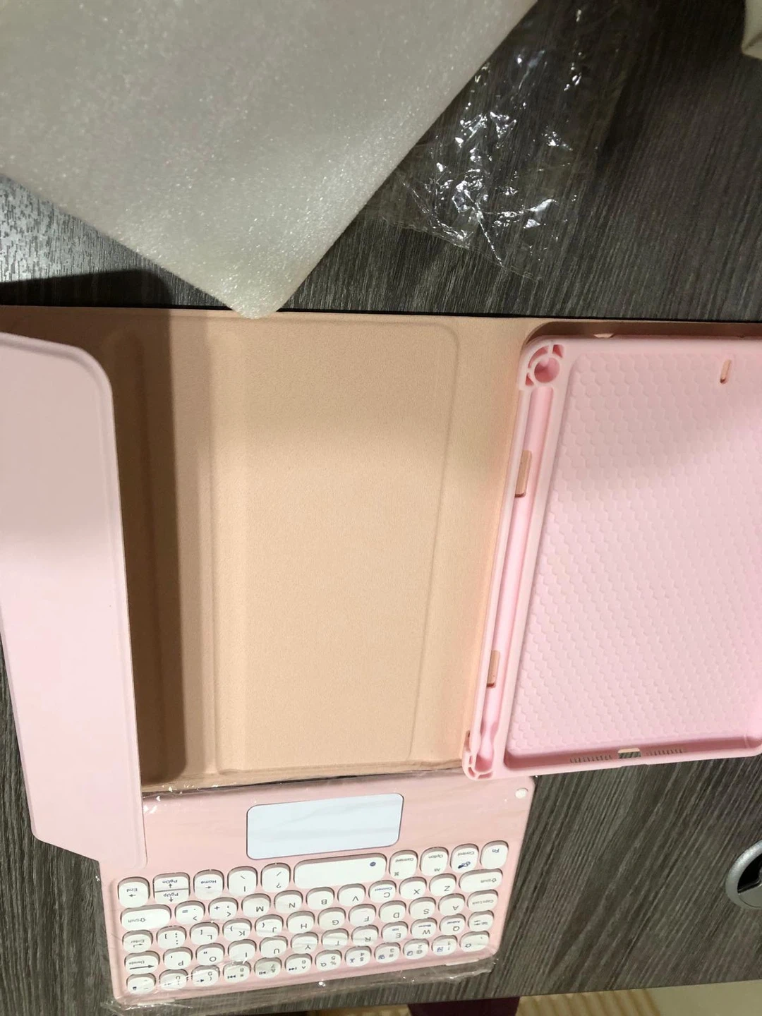 Selling a brand new small size cute pink Samsung tablet cover with keyboard pad!It's still in its original packaging and ready to use with your iPad. Perfect for students or anyone who wants to type on their iPad more comfortably!