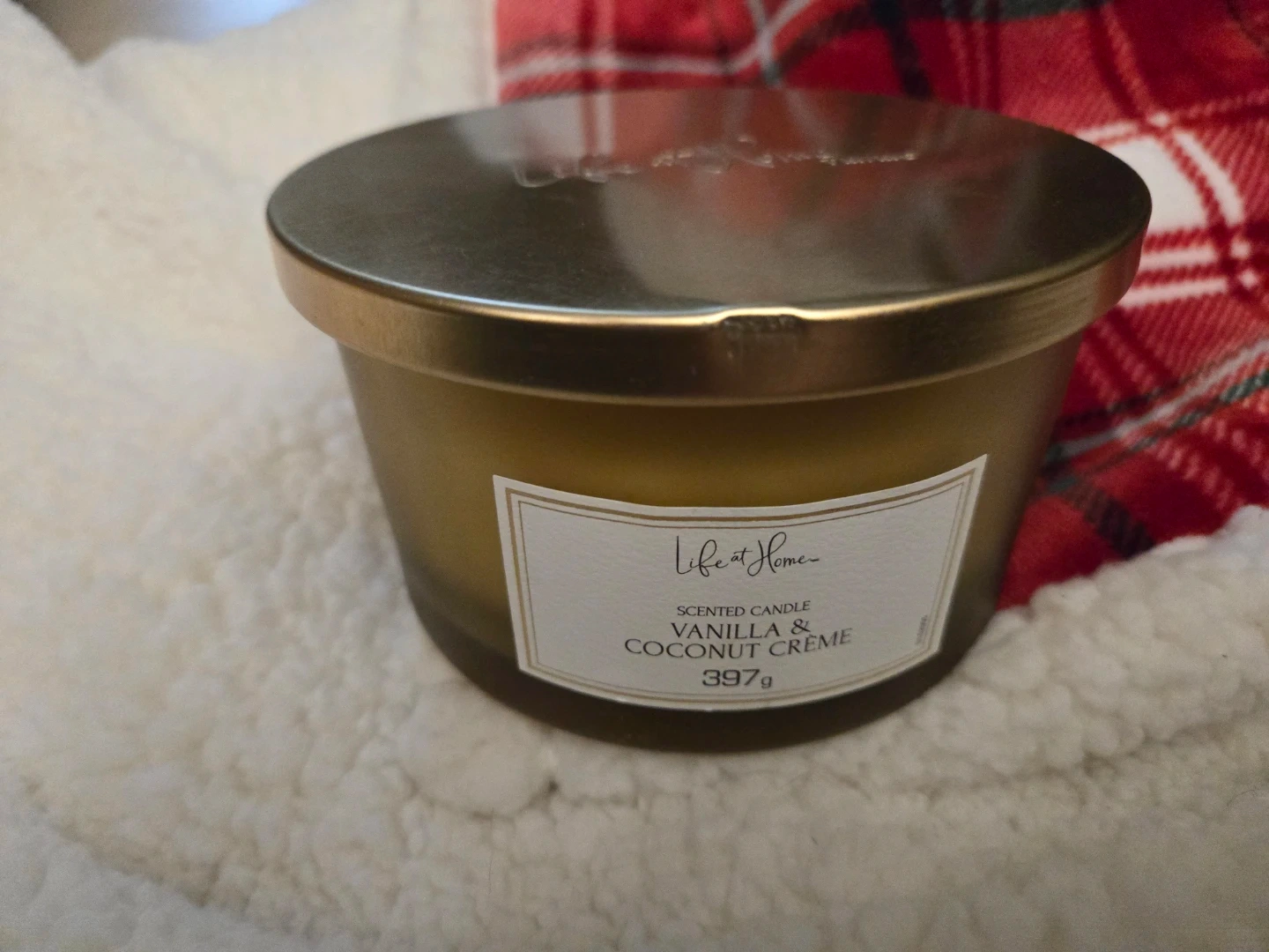 Selling a new Life at Home scented candle in Vanilla & Coconut Crème.