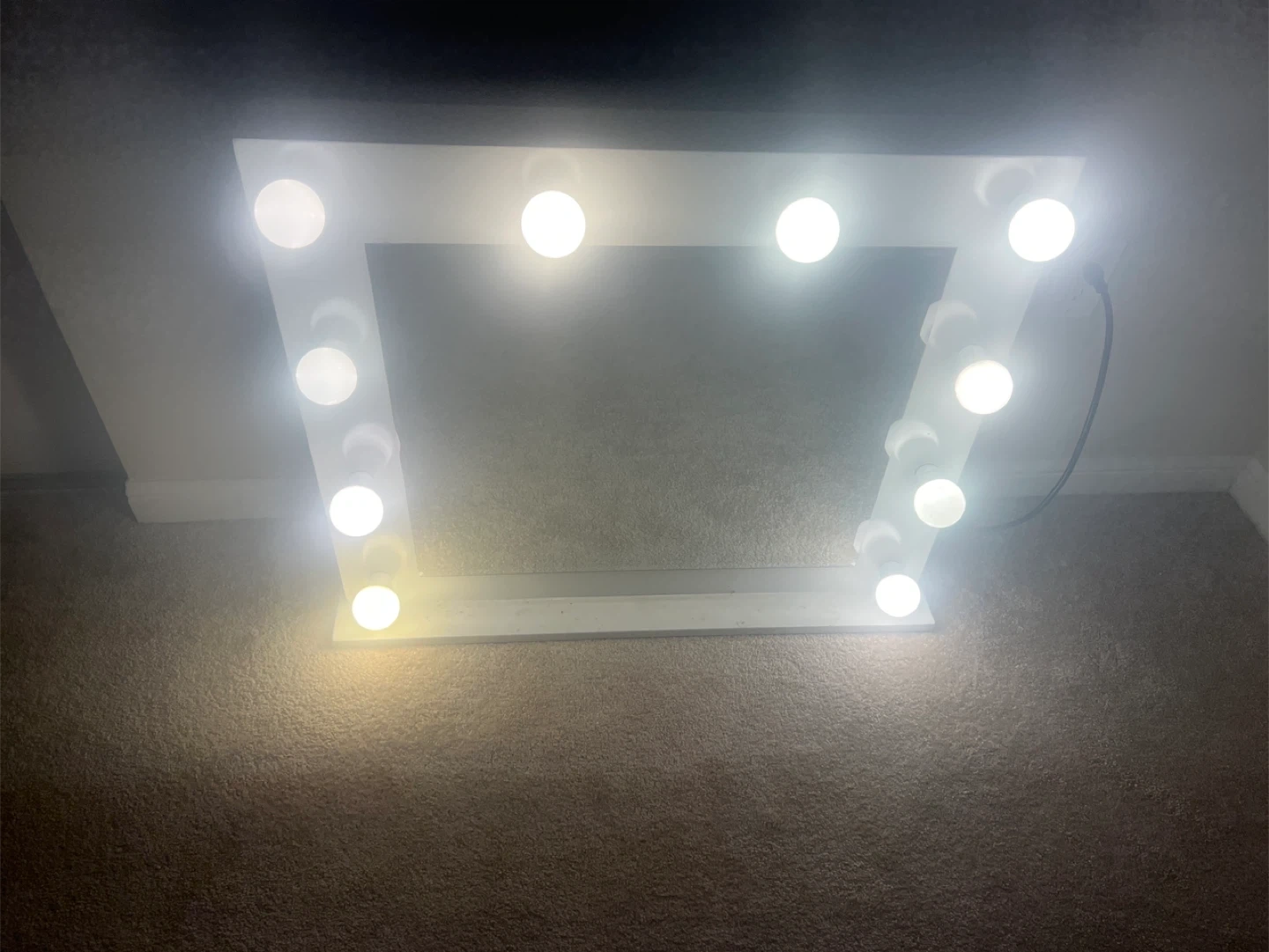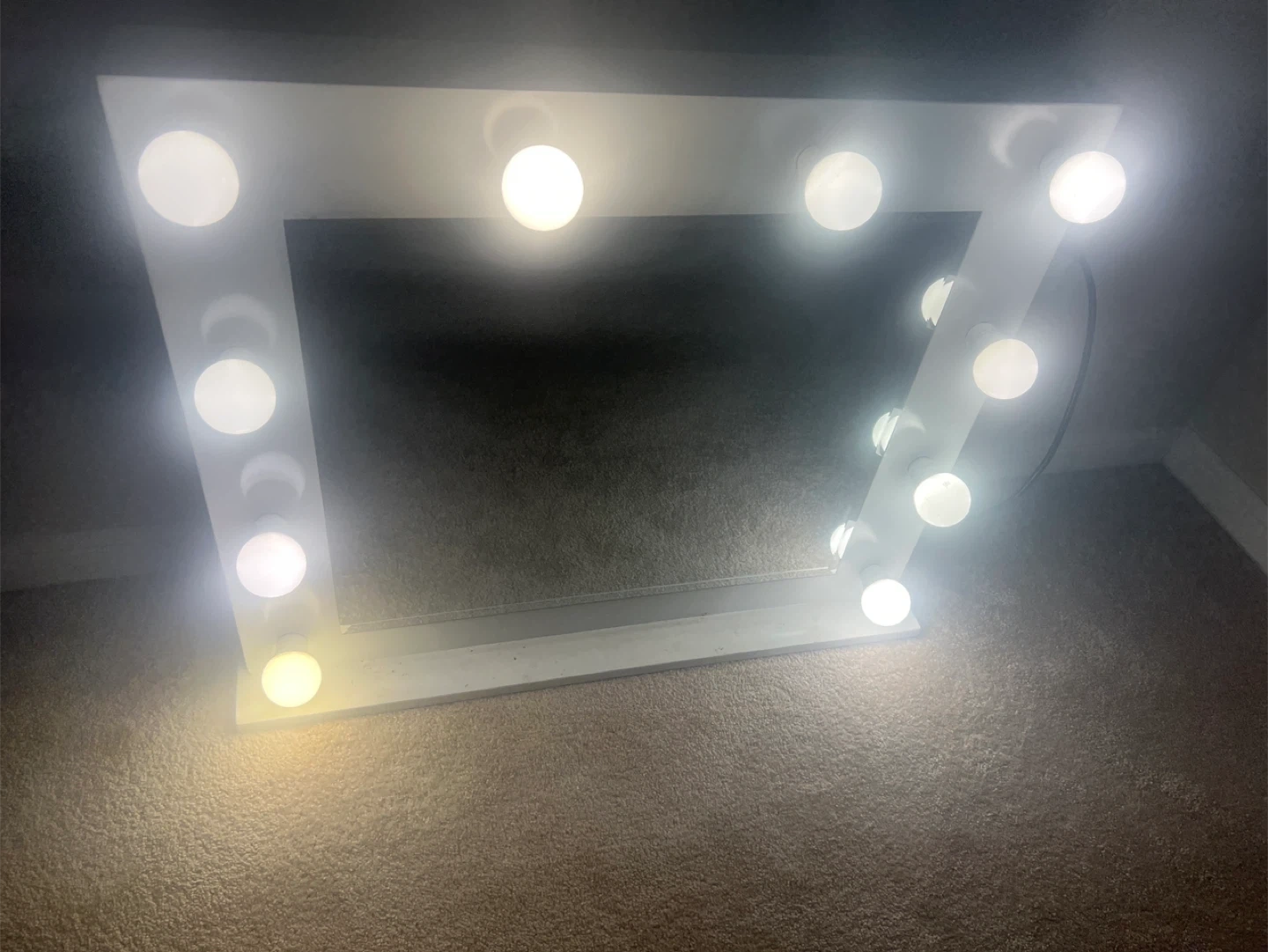 Selling a Hollywood style vanity mirror! It's in great condition and perfect for adding a touch of glamour to your makeup routine or dressing area. The bright lights provide excellent illumination for flawless application. If you're interested, send me a message!