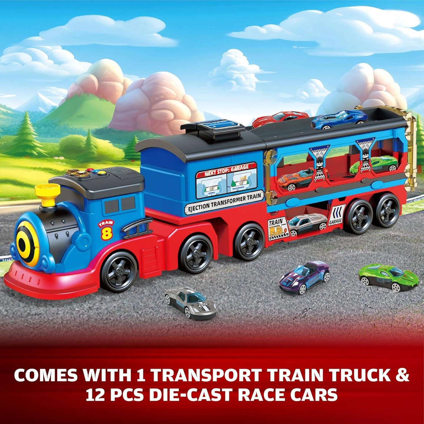 12 vehicles + 3-in-1 track system delivers endless storytelling: combine carrier truck logistics, train connections, and speed challenges in one premium playset.