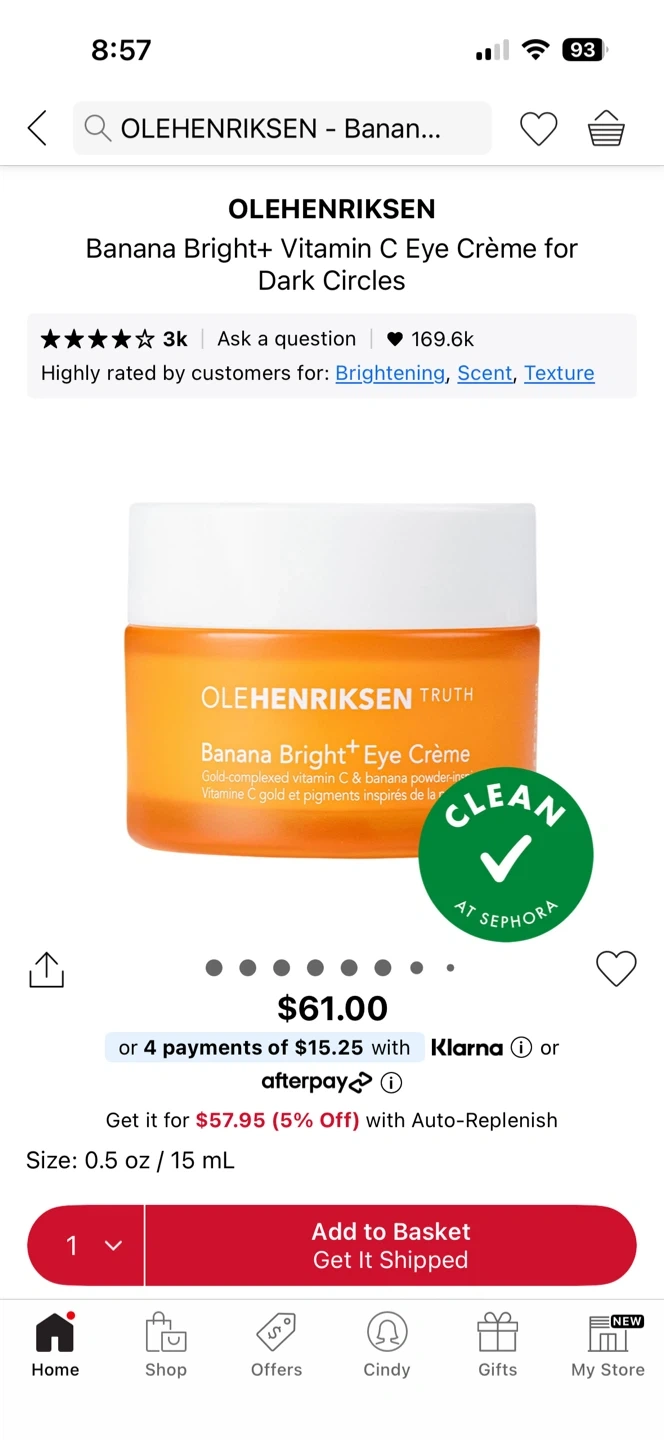 Selling a brand new OLEHENRIKSEN Banana Bright+ Vitamin C Eye Crème! This eye cream is known for brightening, scent, and texture. Size is 0.5 oz/ 15 mL. Retails for $61.00 plus tax