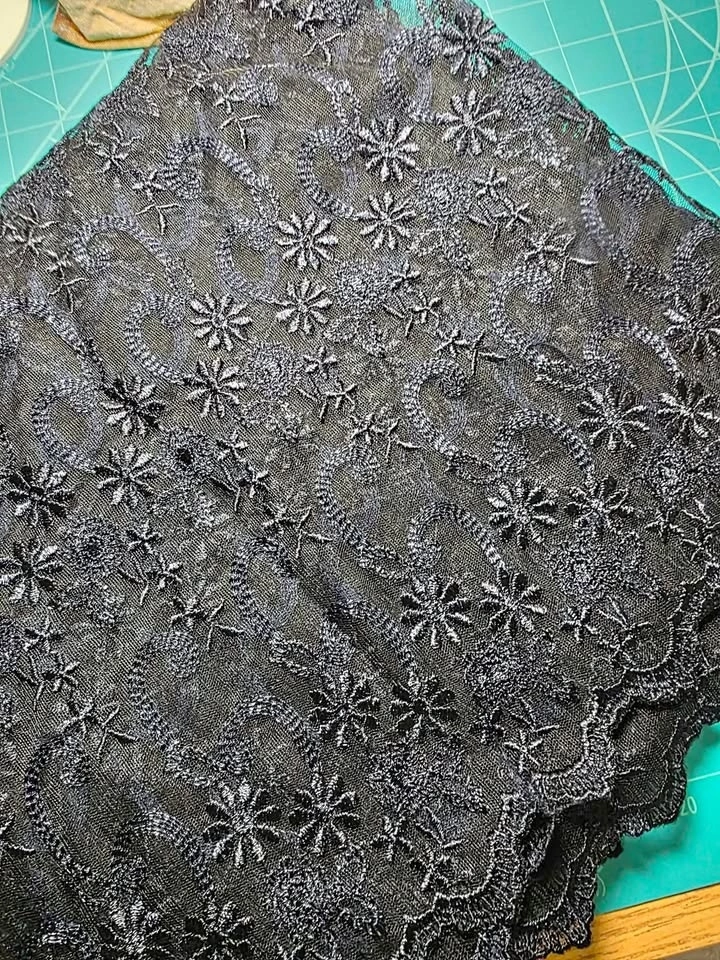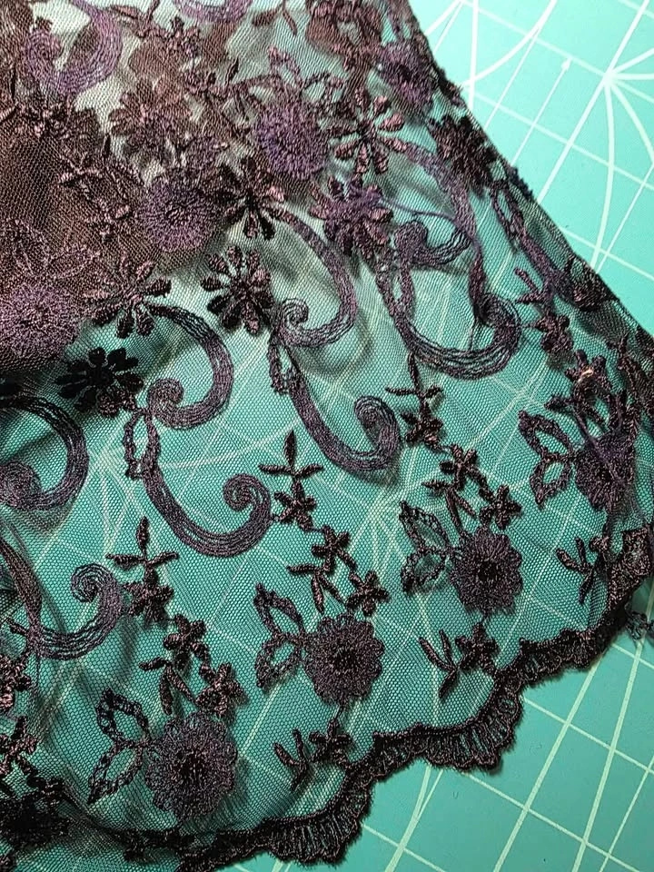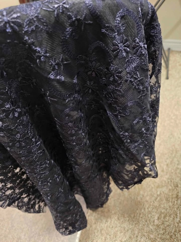 Wide Navy Double Scalloped Edge Fashion Lace Fabric. 52" wide. 1.6 meters long. Dark Navy in colour. Smoke/pet free home. Pick up in west end of Peterborough. $10 for this beautiful piece of lace.