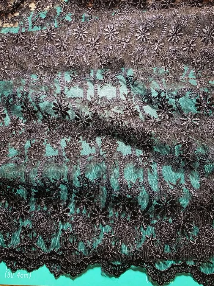 1.6 Meters Wide Navy Double Scalloped Edge Fashion Lace Fabric