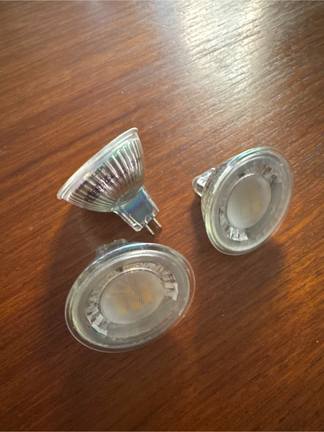 Selling three MR16 2-pin LED light bulbs. They are new but out of the package. I got them to replace a bulb, but realized I didn’t get the right kind but unable to return.