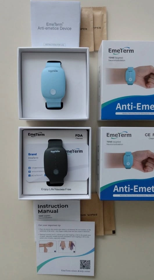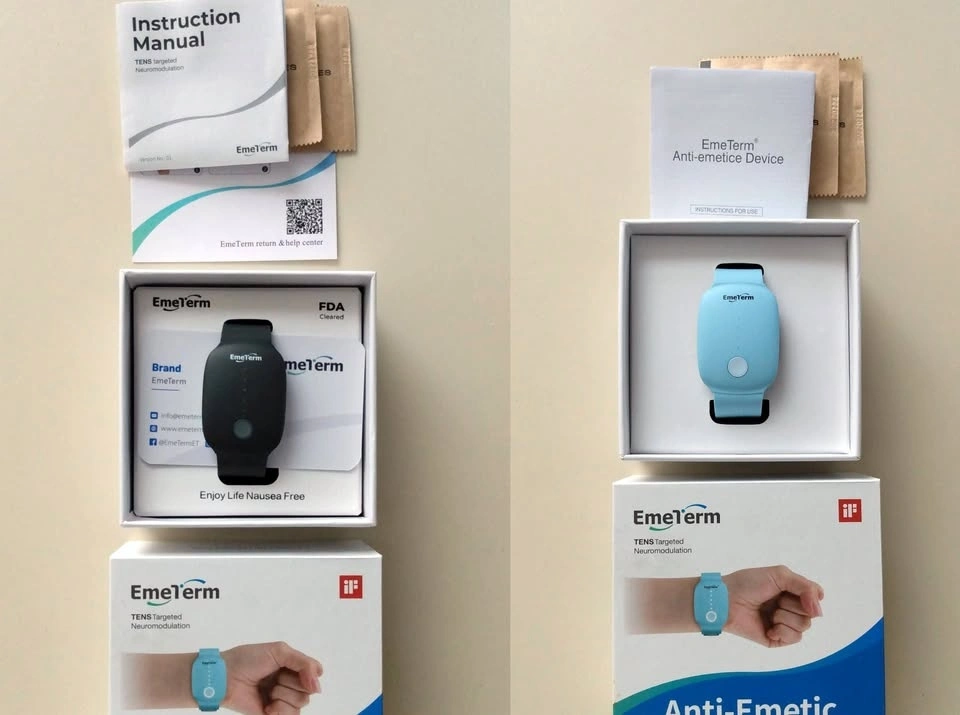 New generation of intelligent wearable anti-emetic device has won iF 2017 design award; unique wristband design holds device in place and makes it easy to put on and take off.