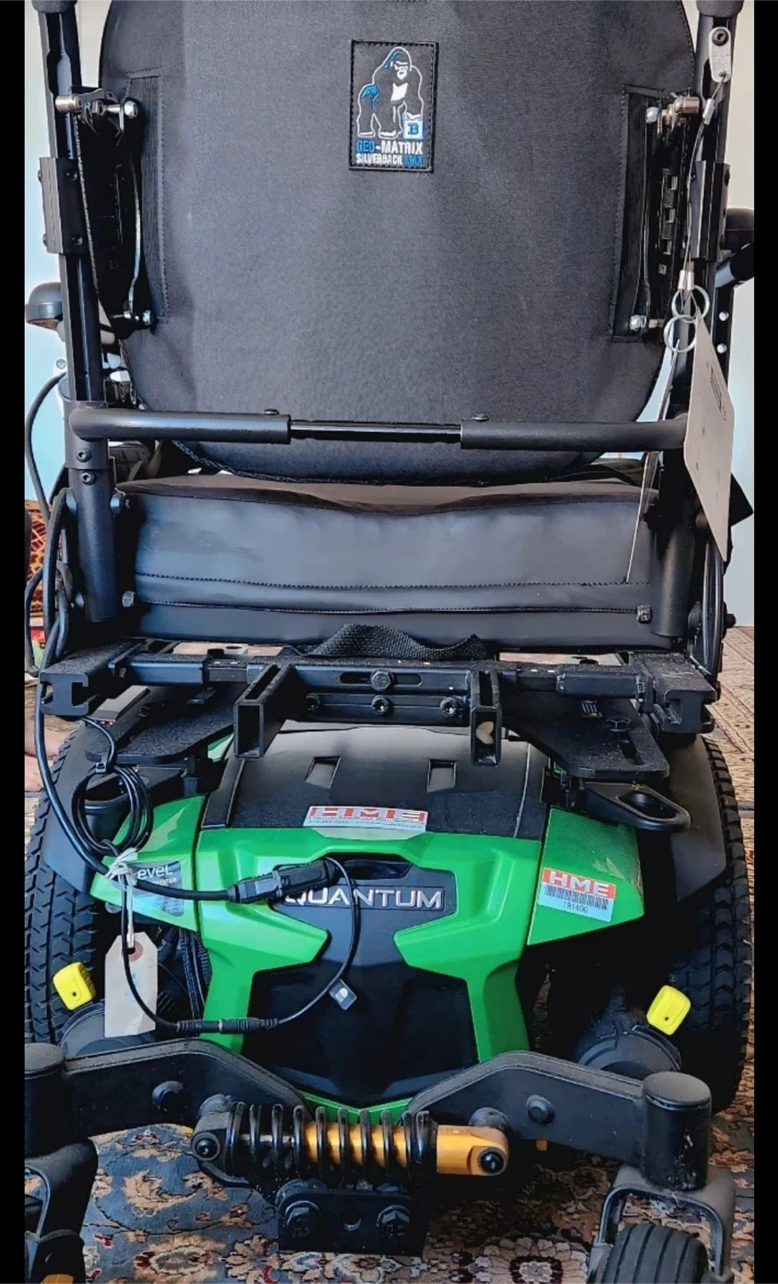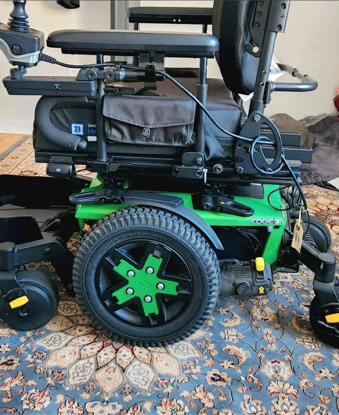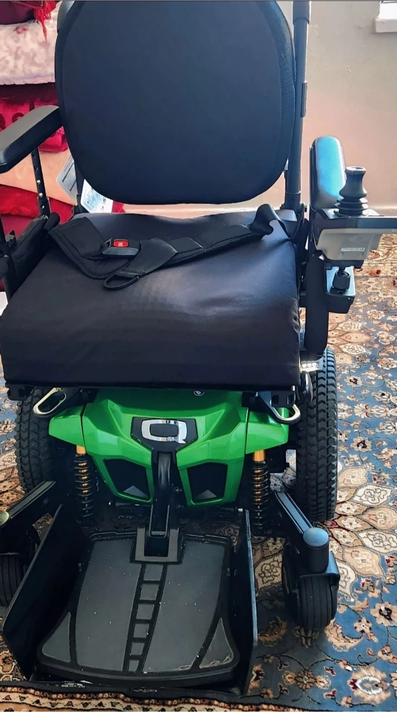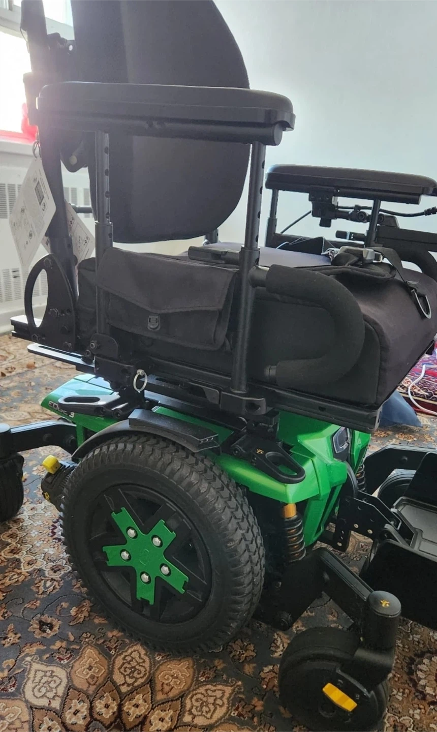Selling a Quantum Edge 3 power wheelchair in green and black. It appears to be in good condition and ready to go! This wheelchair offers mobility and independence. Feel free to reach out if you have any questions or would like to take a look.