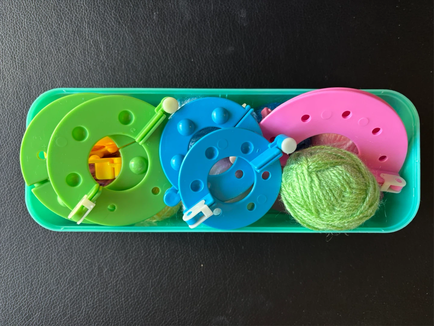 Get ready to make some adorable fuzz balls! This kit includes fuzz ball braiders in 4 sizes and a variety of colourful yarn. It's in great condition and ready for your next crafting project.