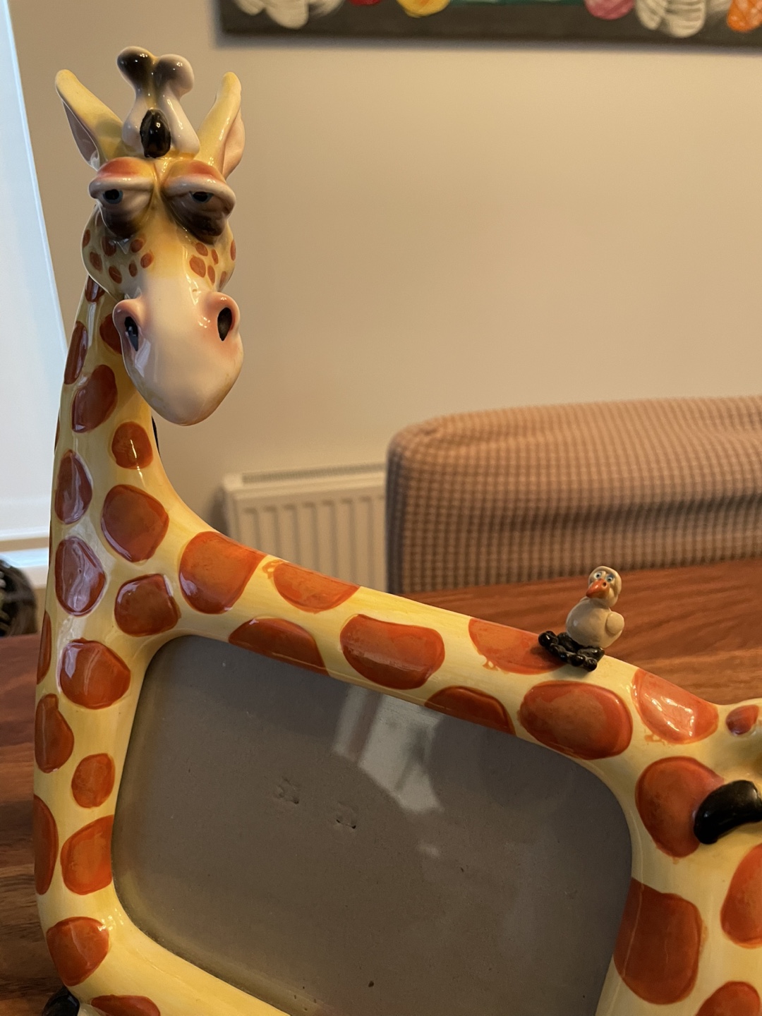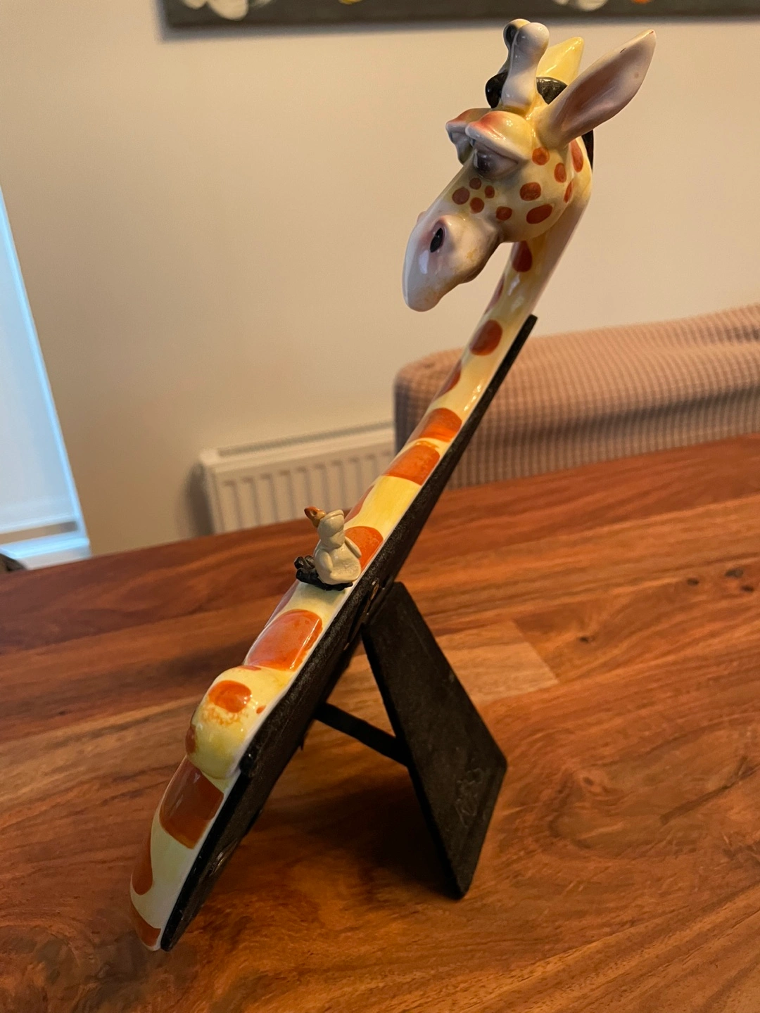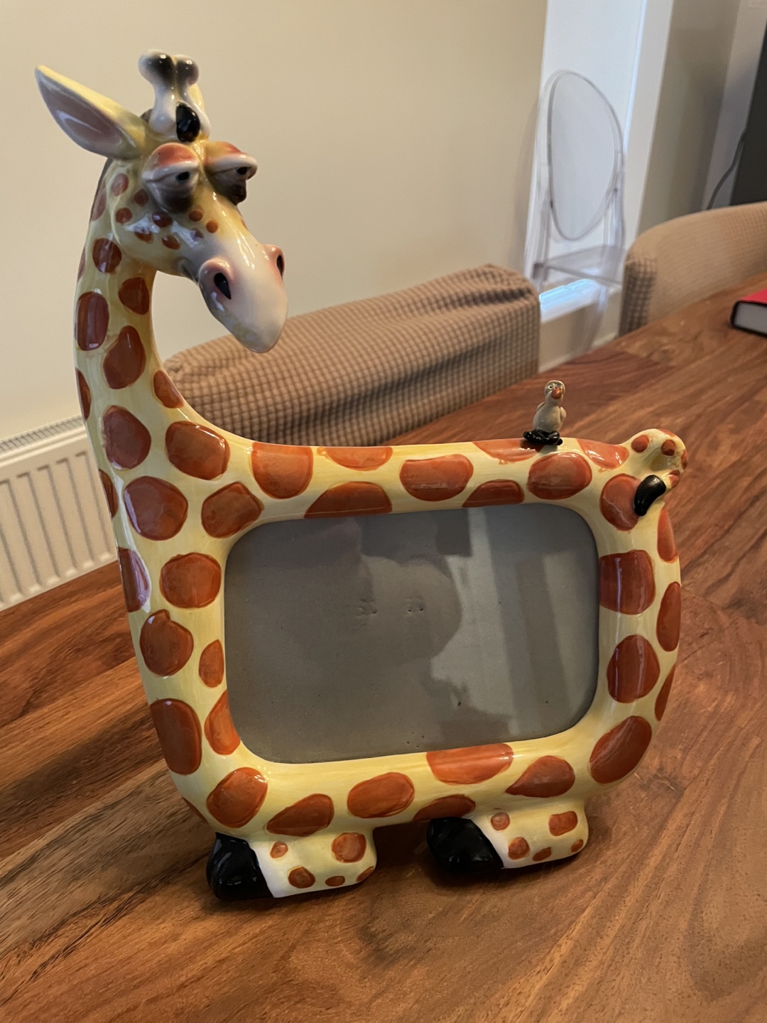Selling a cute, one of the kind giraffe photo frame! It's in excellent condition and would look adorable in a kid's room or anywhere you want to add a touch of whimsy. Great for 6x4” pics.